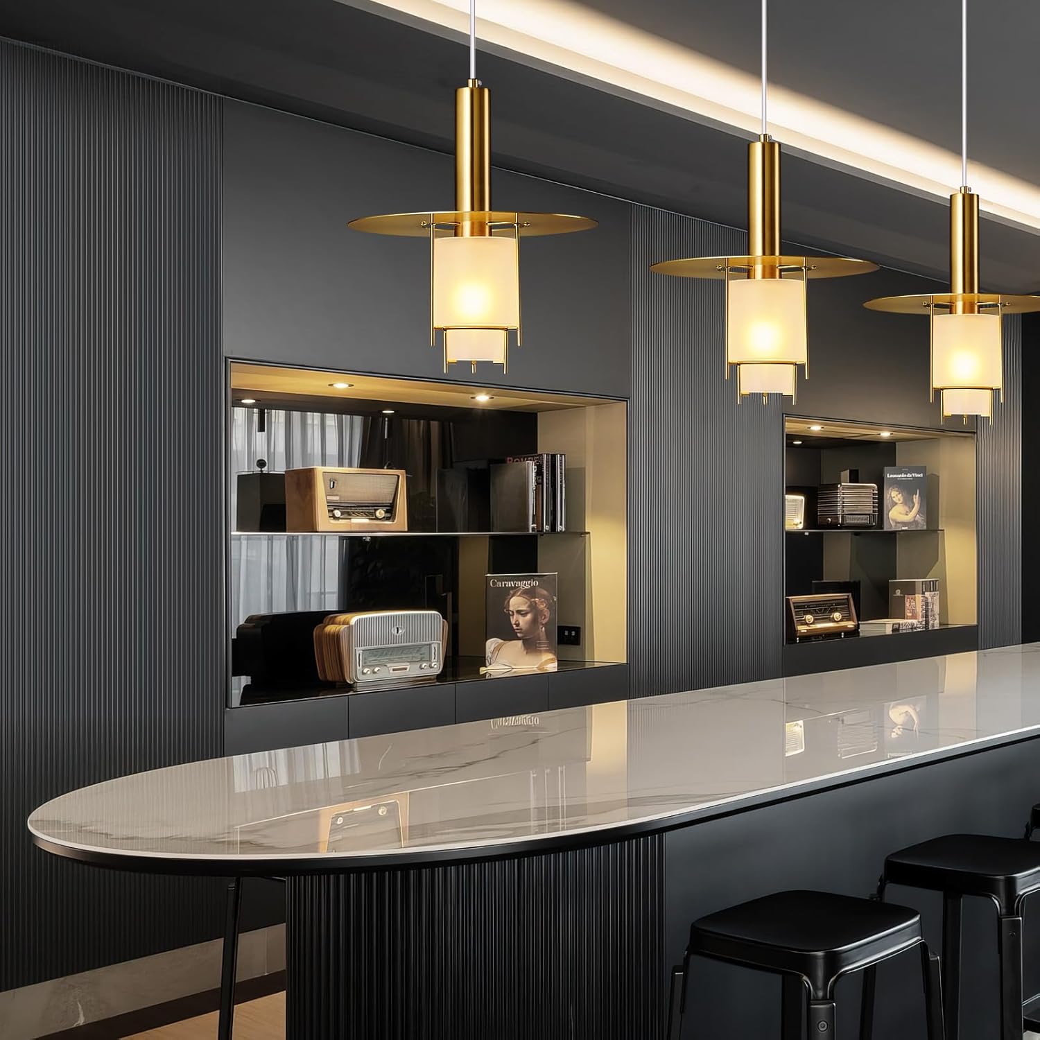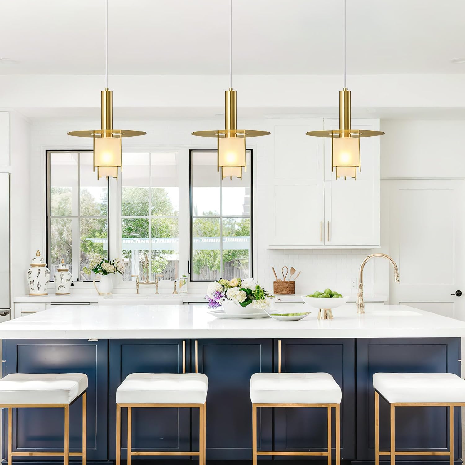 Pendant Light Fixtures Gold Adjustable Modern Pendant Lights for Kitchen Island, Industrial Glass Pendant Lights for Dining Table Hallway Bedroom Living Room