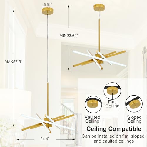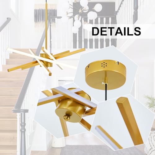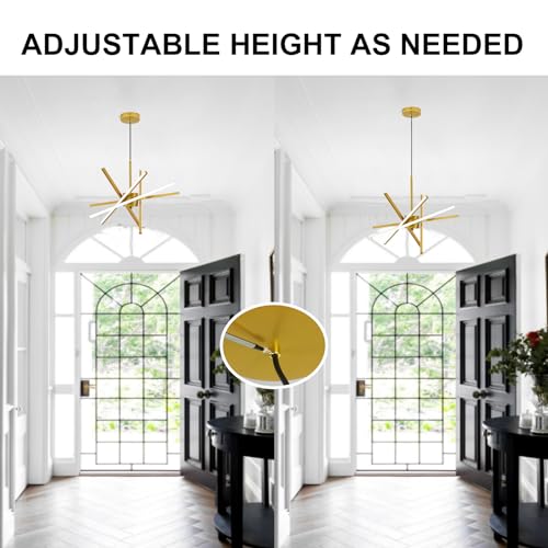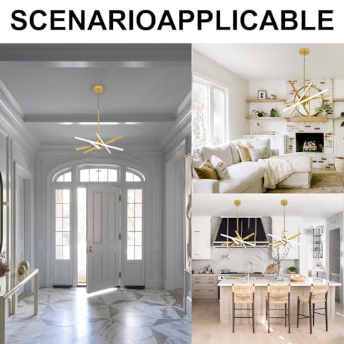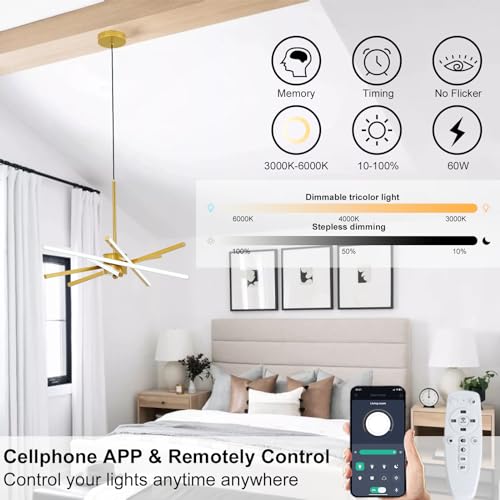 Modern Led Pendant Lights, Black and Gold Sputnik Chandelier with Remote Control, 12-Light Dimmable Adjustable Hanging Light Fixtures Kitchen Chandeliers Over Table for Bedroom Living Room Dining Room