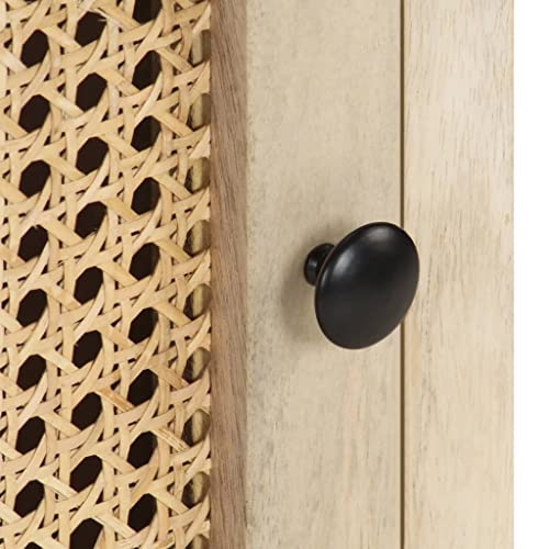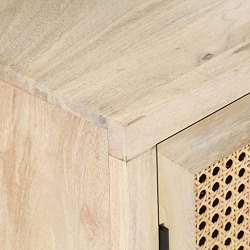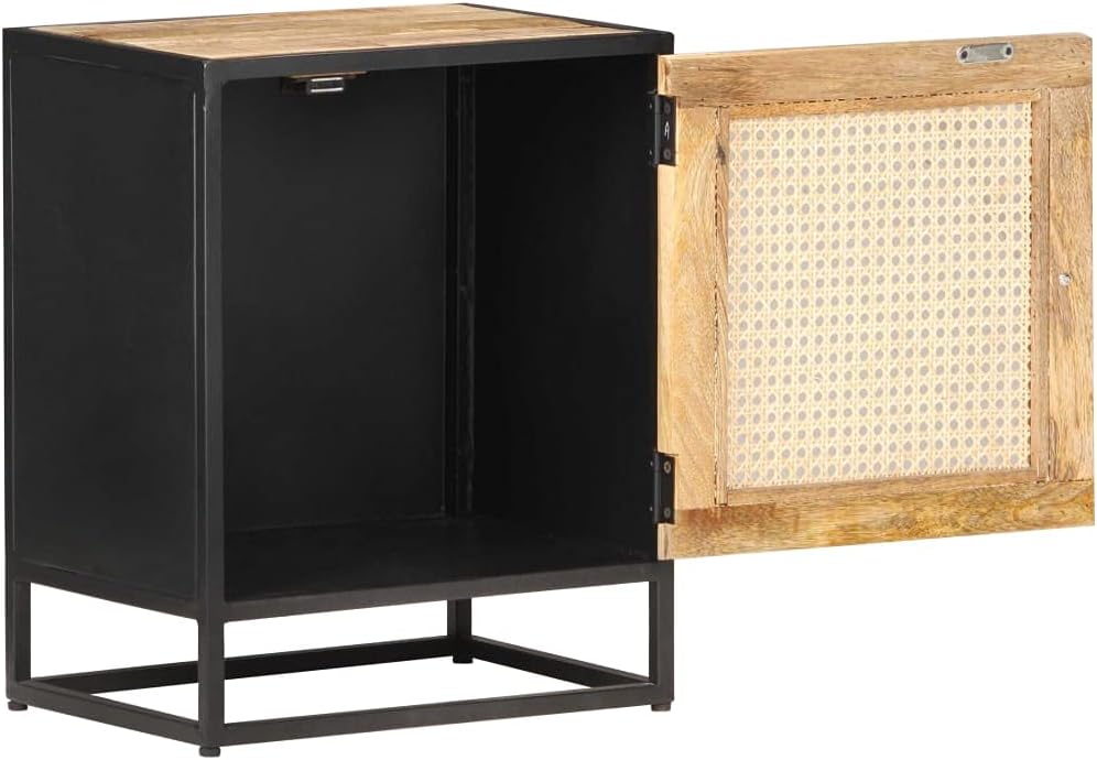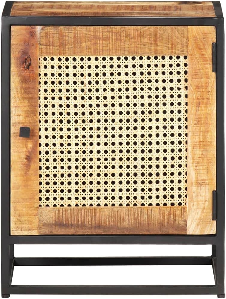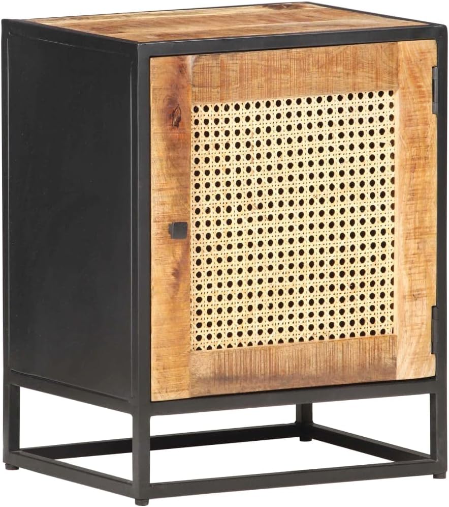 Bedside Cabinet 15.7"x11.8"x19.7" Rough Mango Wood and Natural Cane, Nightside Table, Night Table, Bedside Table for Bedroom Decor and Storage