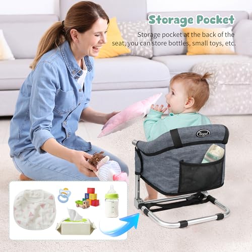 Booster Seat for Dining Table: Portable Toddler Booster Chair with Safety Buckle and Height Adjustable, Foldable Baby Feeding Chair, Kids High Chair Booster Seat for Kitchen Home Travel - Black