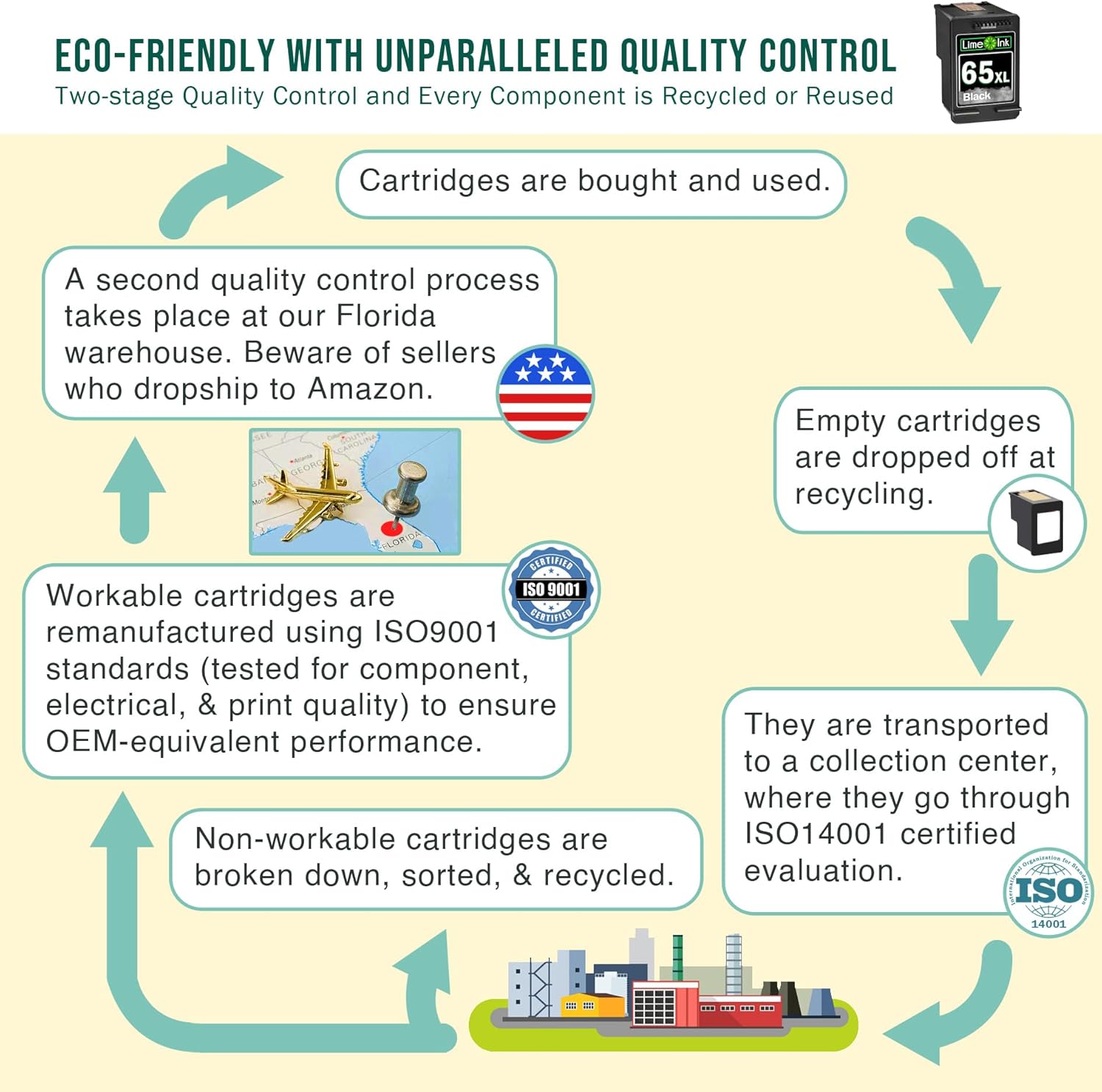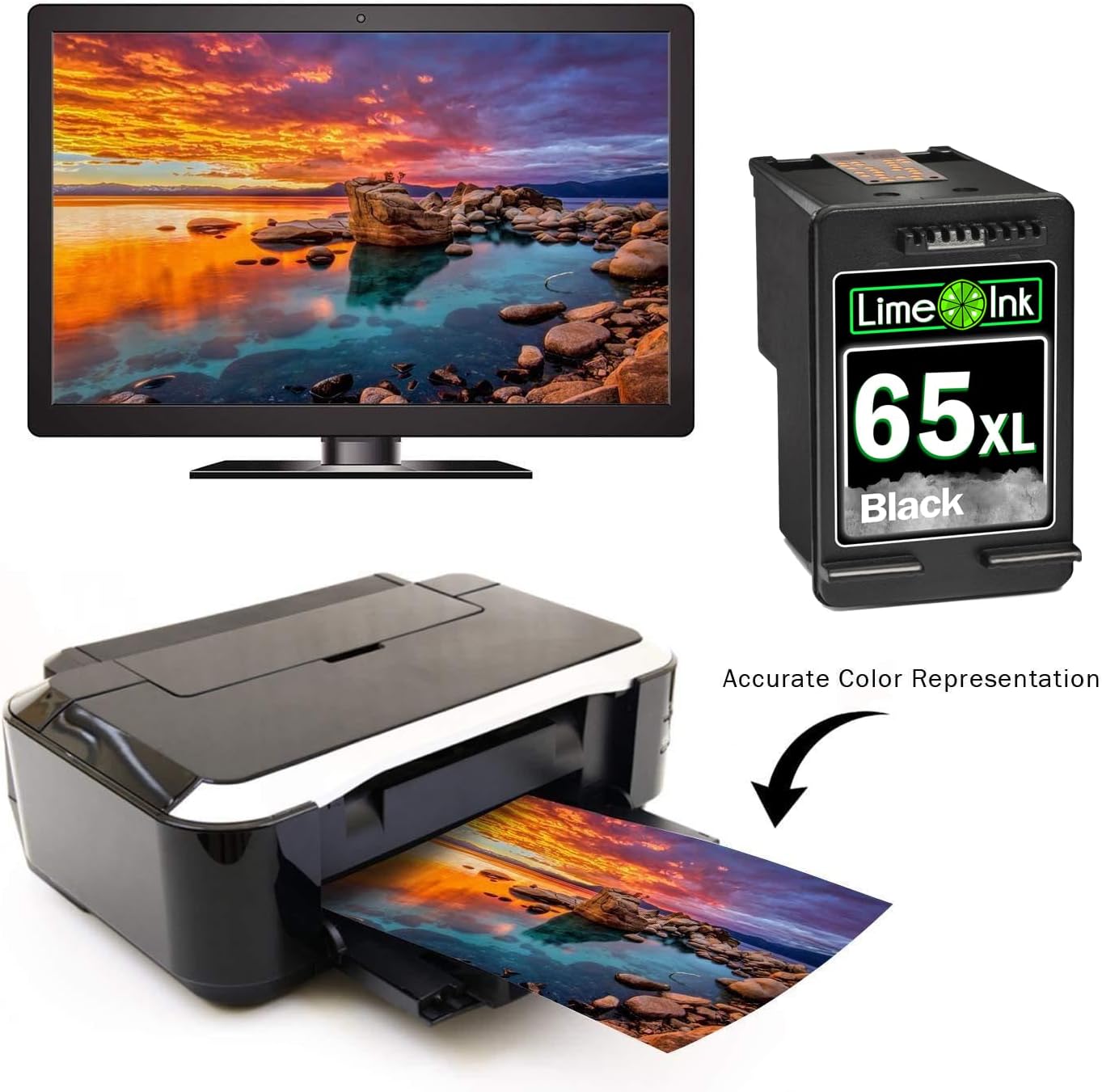 Limeink 1 Remanufactured Ink Cartridges Replacement for HP Ink 65 65XL for HP 65 black ink cartridge for HP65 XL Ink Cartridges 65xl Ink Cartridge for HP Printers for HP 65xl black ink cartridge - 1BK