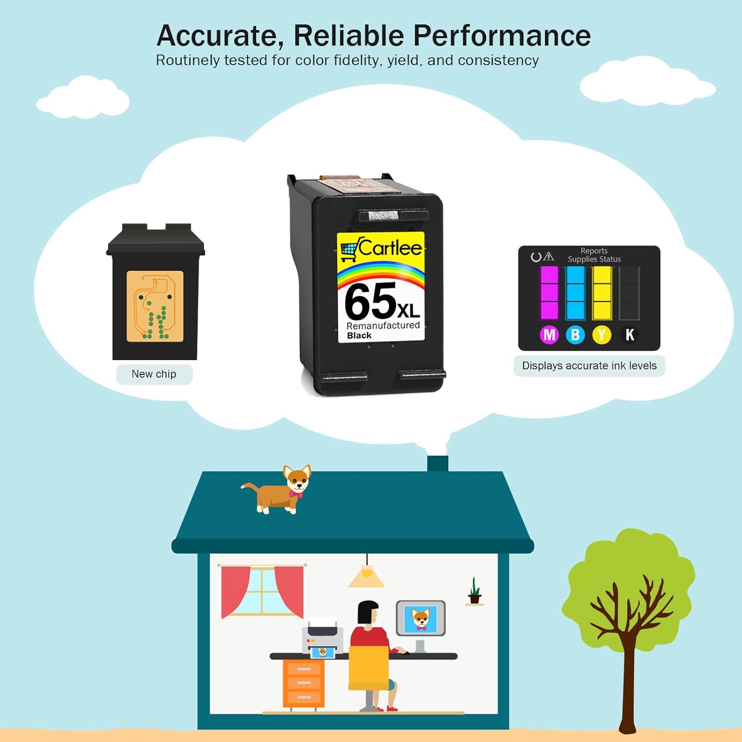 Cartlee Remanufactured 65XL 65 XL High Yield Ink Cartridge for HP DeskJet 2600 2622 2635 2652 2655 3700 3720 3722 3752 3755 Envy 5000 5052 5055 AMP 100 Printer Series (1 Black)