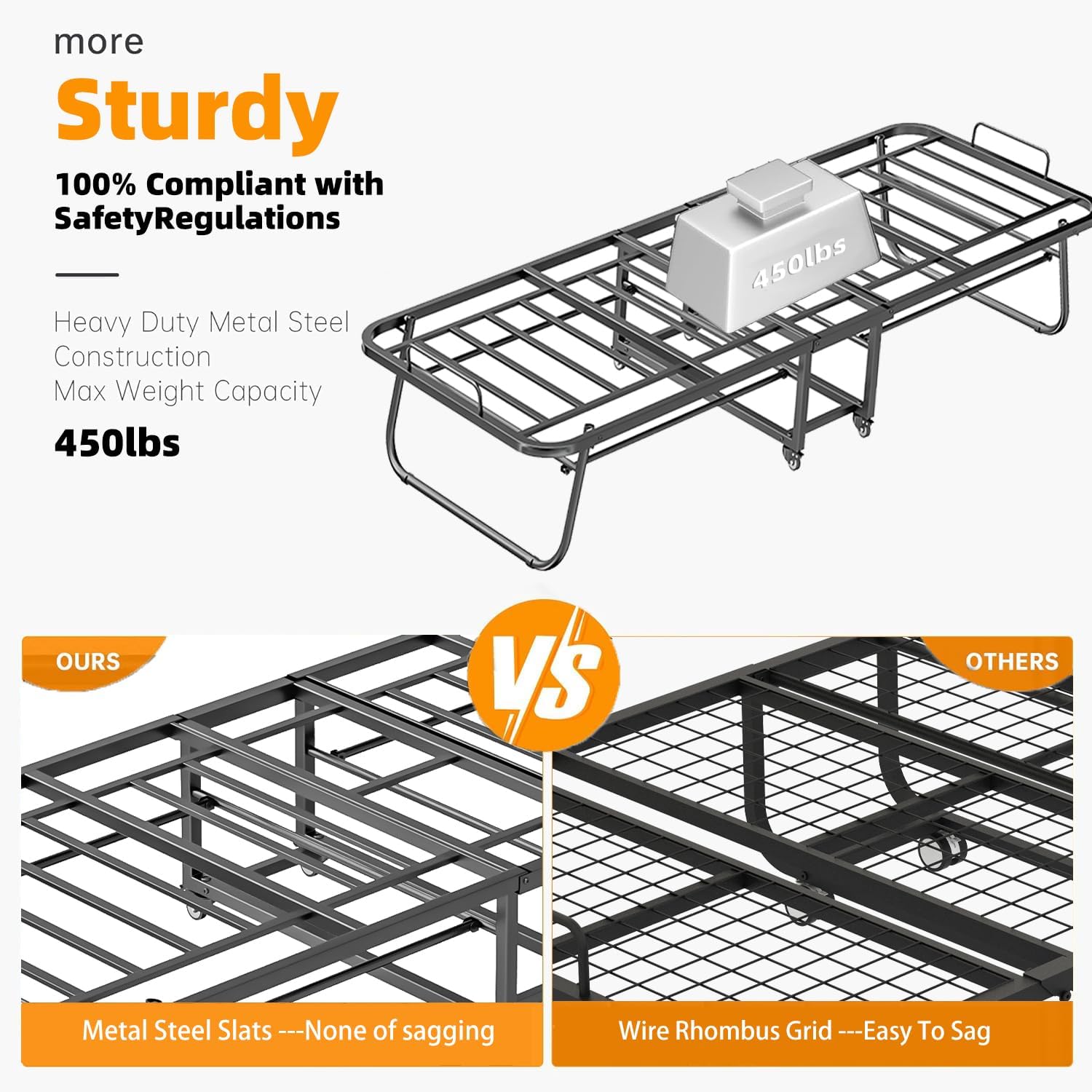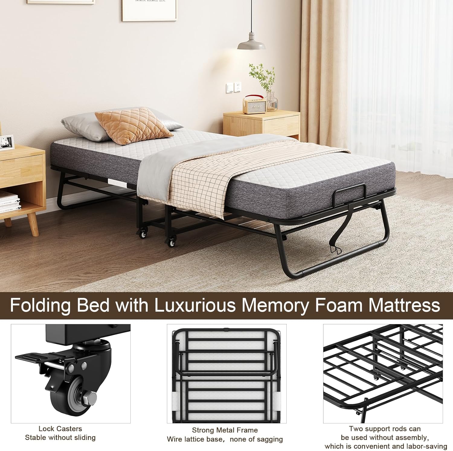 75''x46''Folding Bed with Mattress, Twin Size RollAway Bed for Guest, Portable Bed Foldable Bed with Folding Mattress