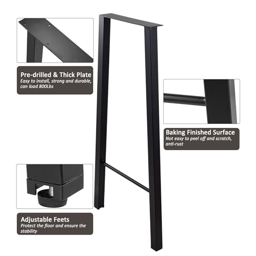 Metal Table Legs 28 Inch Heavy Duty Desk Legs Black Metal Steel Dining Table Legs with Adjustable Feet, Black, Set of 2