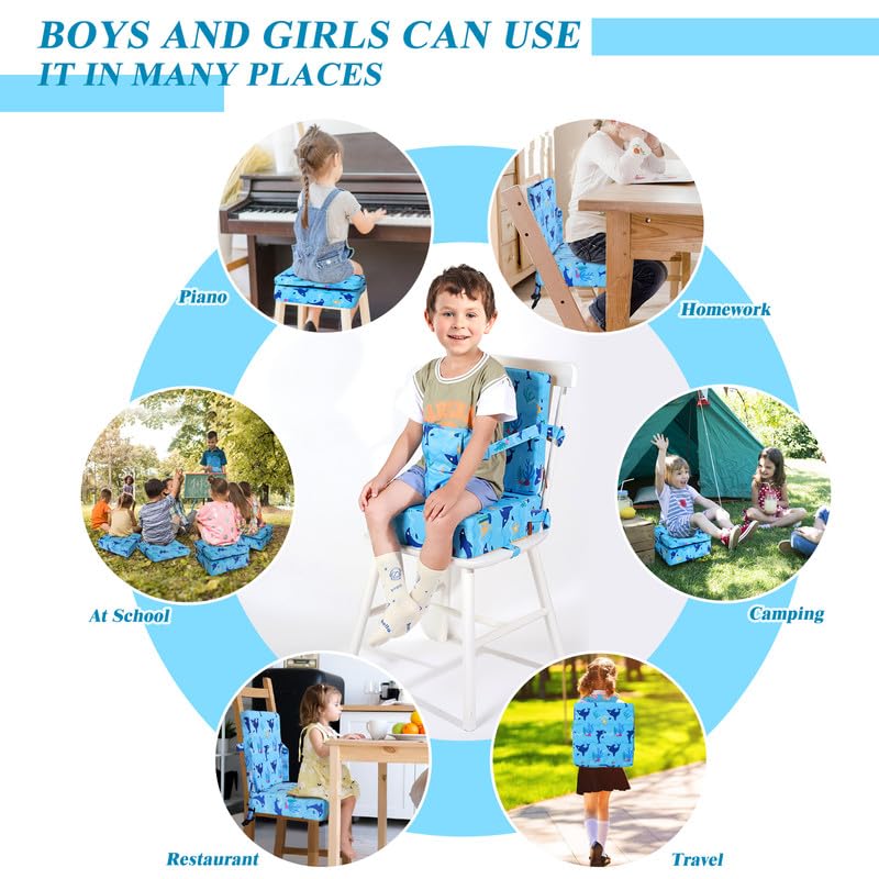 Toddler Booster Seat for Dining Table, Cartoon Booster Seat for Dining Table with Backrest and Adjustable Seat Belts Non-Slip Portable Booster Seat Increasing Cushion for Kid Baby Eating Travel Home