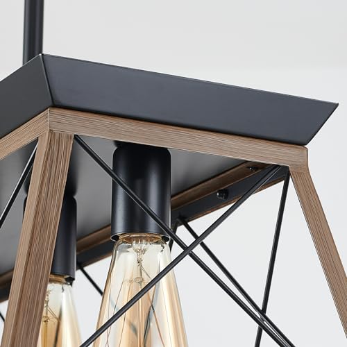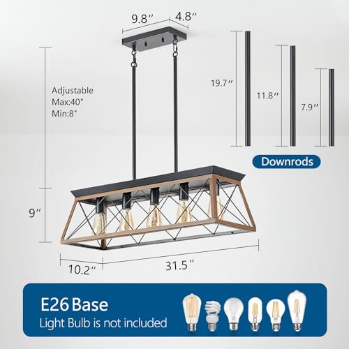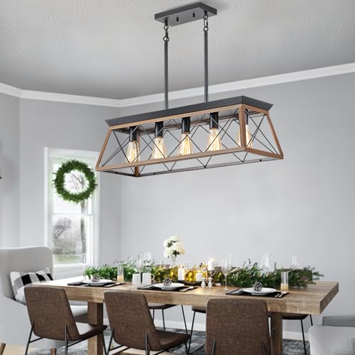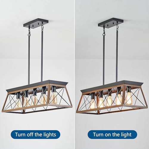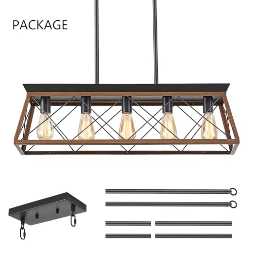 HuixuTe 5-Light Farmhouse Pendant Light for Dining Room, Rustic Kitchen Island Lighting, Adjustable Height Chandeliers for Kitchen, Dining Room Table Black