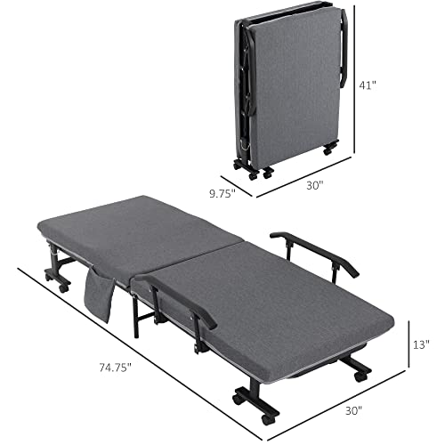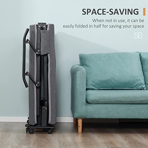 HOMCOM Rollaway Bed, Folding Bed with 3.25" Mattress, Portable Foldable Guest Bed with Adjustable Backrest, and Metal Frame on Wheels, Dark Grey