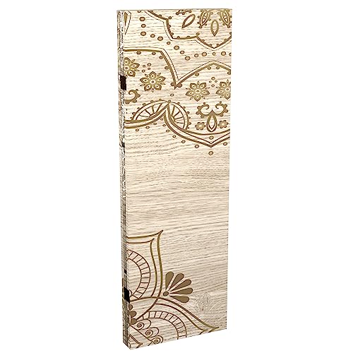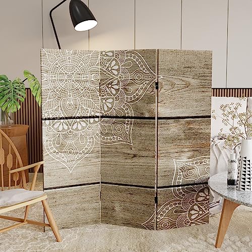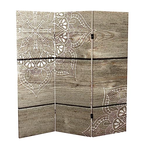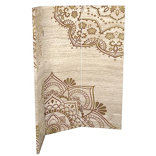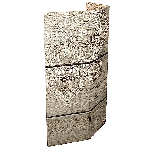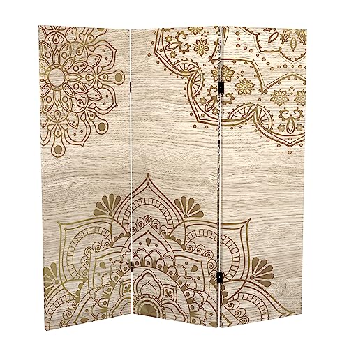 Red Lantern 2 ft. Short Double Sided Mandala on Oak Canvas Folding Screen 4 Panel Freestanding Partition and Separator for Modern and Contemporary Bedroom, Home Office, Studio, Dorm, Apartment