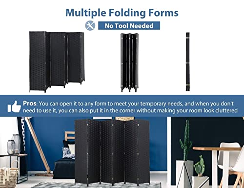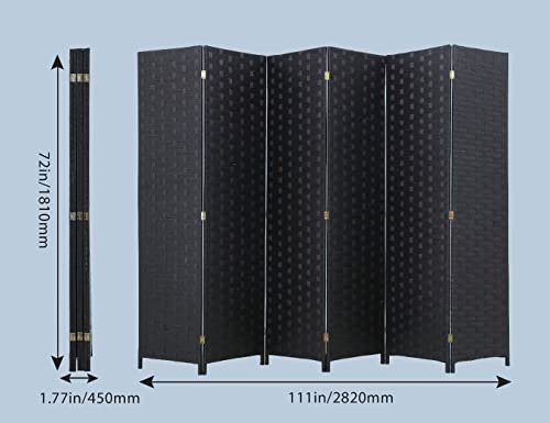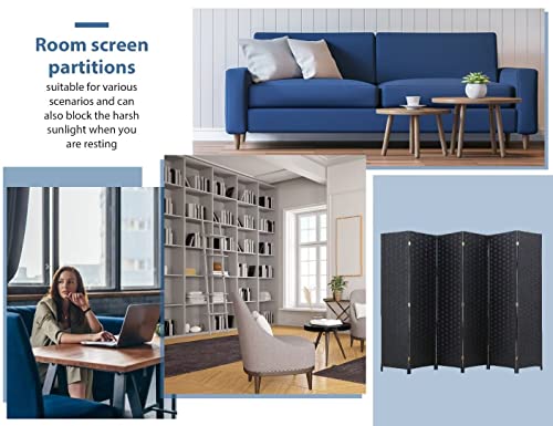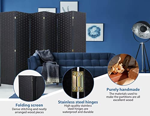 6 Panel Room Divider Handwork Wood Mesh Woven room Dividers and Folding Privacy Screens with Double Sides Weaved, Foldable Portable Room Partitions and Dividers for Bedroom,Office,Home(BLACK)