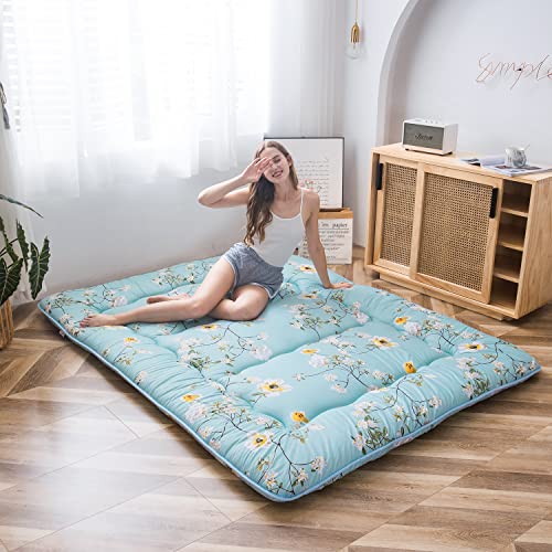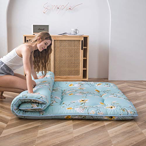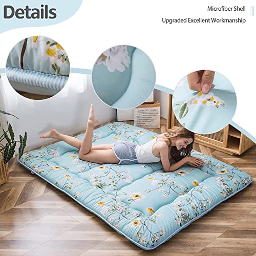 MAXYOYO Floral Printed Rustic Style Japanese Floor, Futon Mattress for Adults Foldable Roll Up Camping Mattress Floor Lounger Bed Couches and Sofas Twin Size