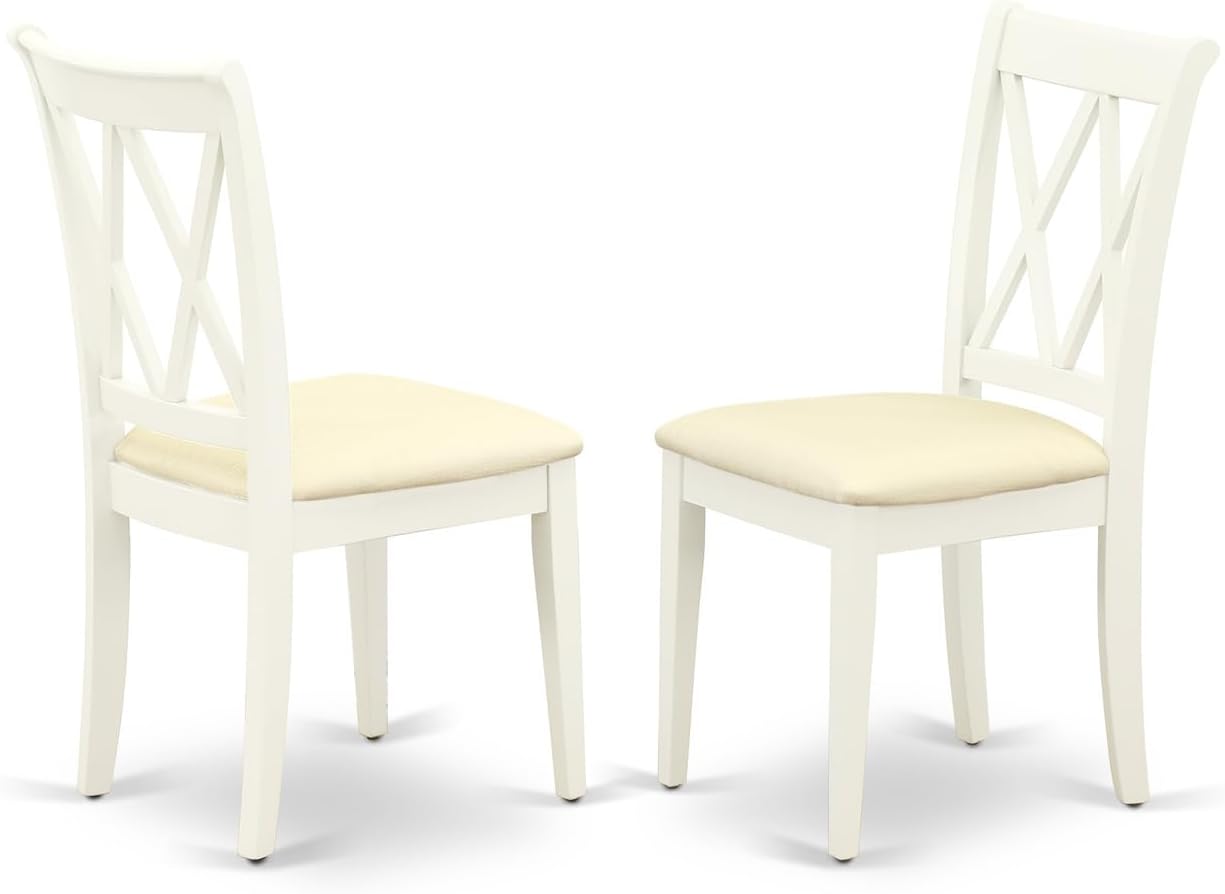 Gothic Grace 5Pc Dining Set Includes A Round Dinette Table and Four Double X Back Linen Seat Kitchen Chairs, White Finish