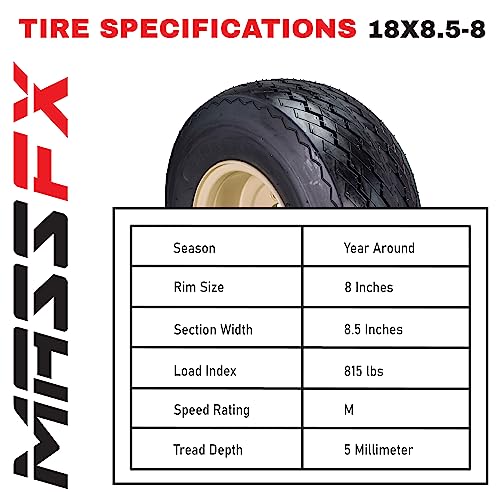 18x8.50-8 with 8x7 Matte Black Wheel Assembly for Golf Cart & Lawn Mower (Set of 4)