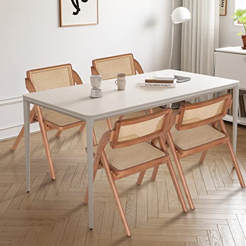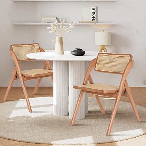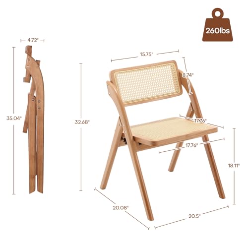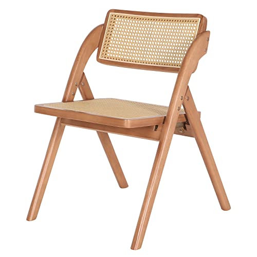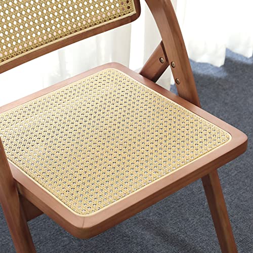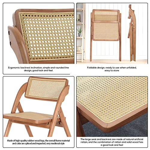 Folding Chair Solid Wood Rattan Chairs, Mid-Century Modern Rattan Dining Chairs with Cane Back Handmade for Living Room, Bedroom, Garden, Balcony, Office, No Assembly Required (Black)