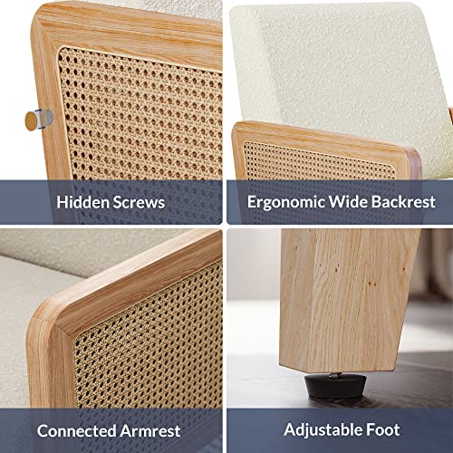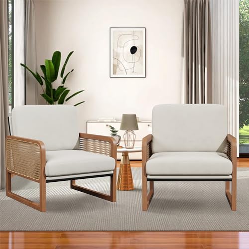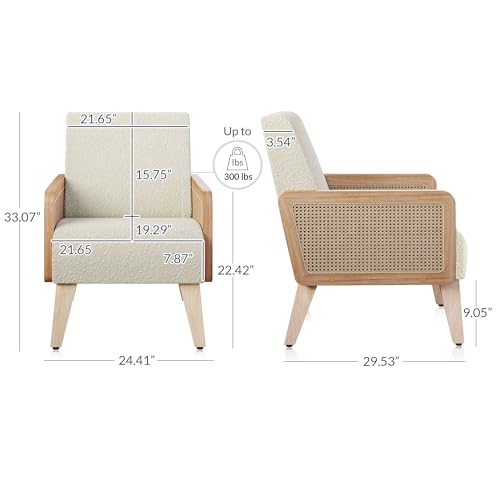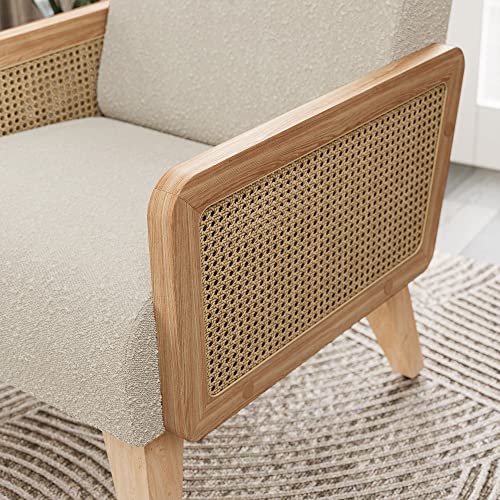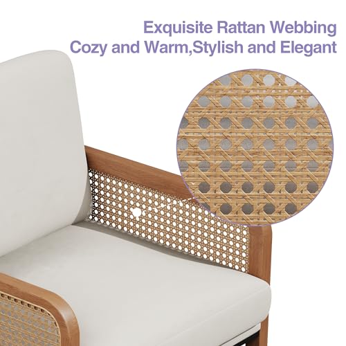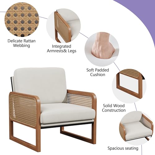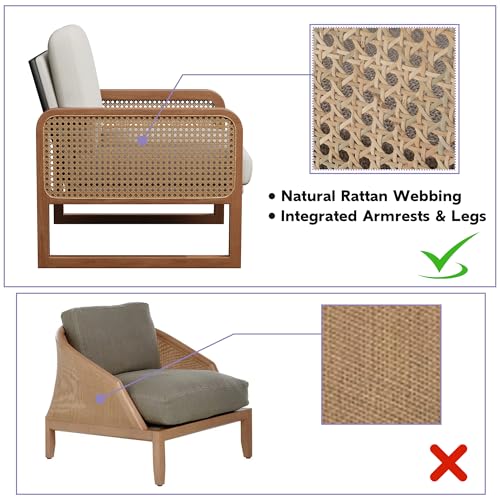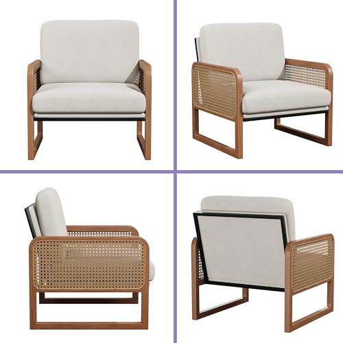 HAOBO Home Accent Chair Natural Rattan Armchair Mid Century Modern Chair Upholstered Living Room Chairs Comfy Lounge Chair for Bedroom Reading Room