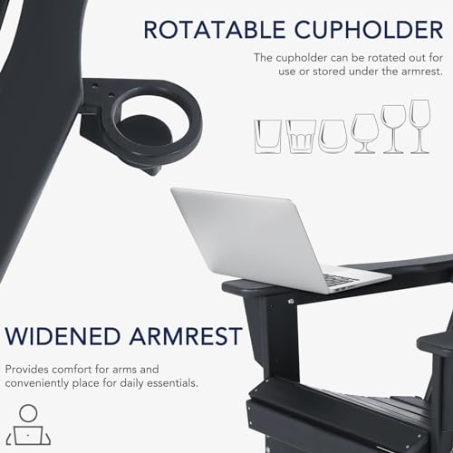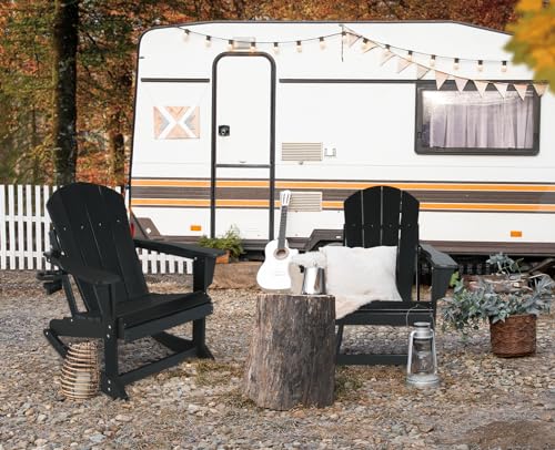 Plastic Adirondack Chair - Rocking Adirondack Chairs with Cup Holder, Weather Resistant Seating for Patio, Porch, Deck, Pool, Garden, Backyard (Seat Width 20", Light Brown)
