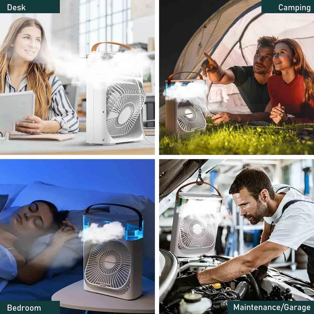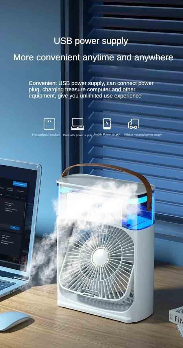 Mini Air Cooler, USB Desk Fan, Personal Evaporative Cooler with 7 Colors LED Light, 1/2/3 H Timer, 3 Wind Speeds and 3 Spray Modes for Office, Home, Dorm, Travel PORTABLE FAN (Classic)