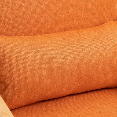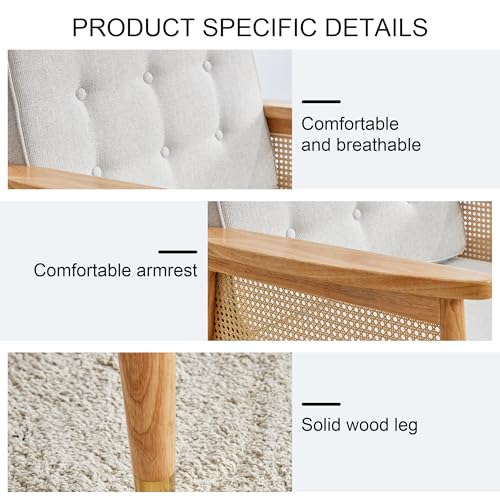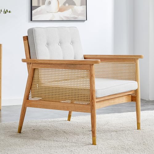 Accent Leisure Chair Living Room Chairs Modern Minimalist Rattan Like Solid Wood Arm Chair 1-Seat Cushioned Sofa for Living Room Bedroom (Walnut)