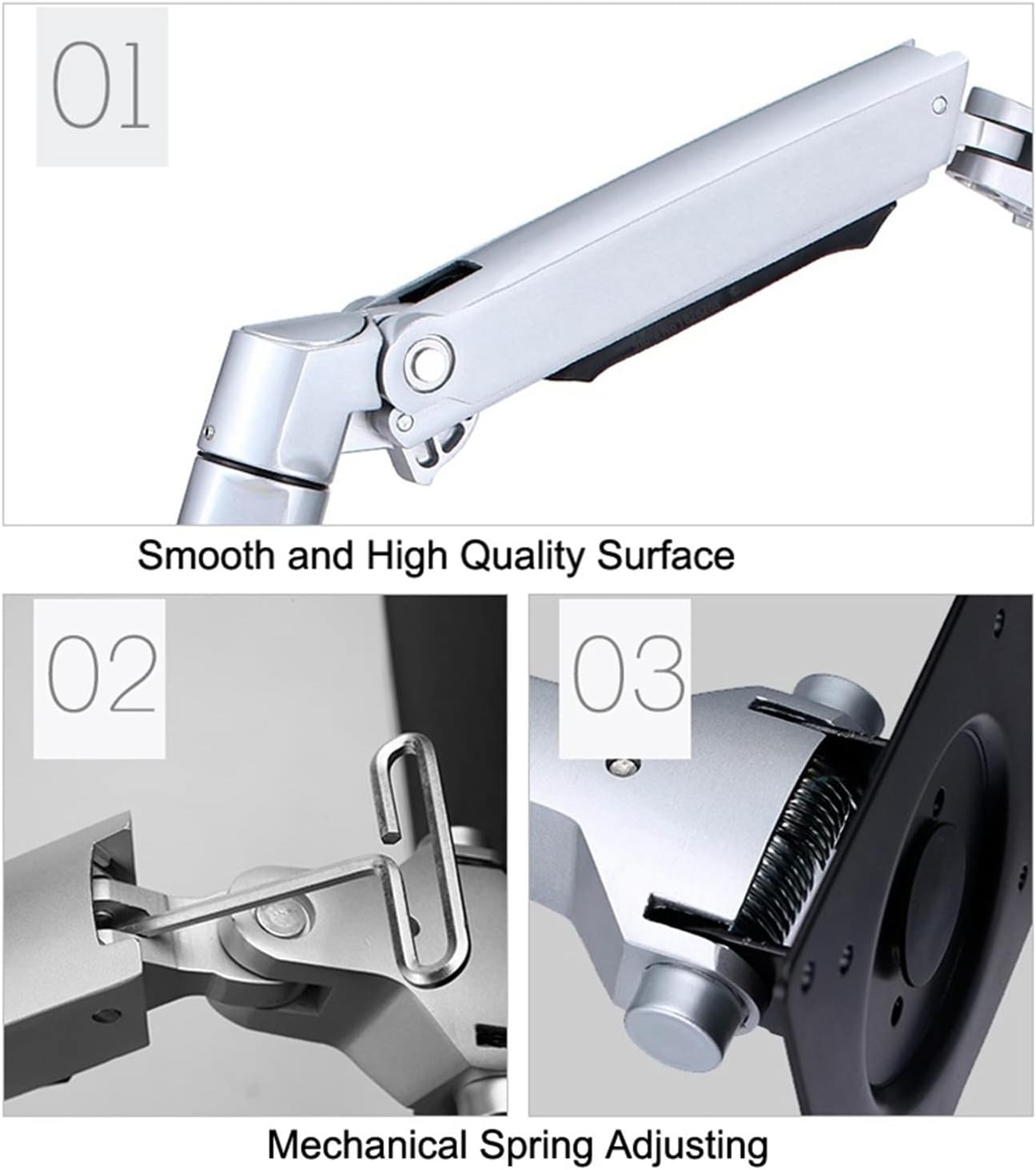 Display Bracket Arm Wall Mount Monitor Bracket Arm Aluminum Ultra Long Mechanical Spring Arm Monitor Support Full Motion Monitor Holder Mount Bracket, Silver Display Bracket