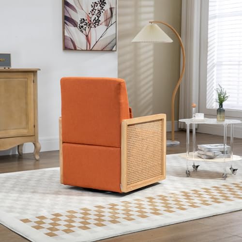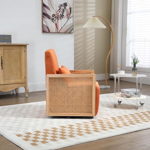 360 Modern Swivel Chair, Linen Accent Chair with Wood Arms and Pollow, Rattan Frame, Comfy Upholstered Armchair for Living Room, Bedroom, Office, Waiting Room, Hotel, Linen Hot Pink