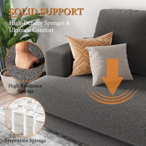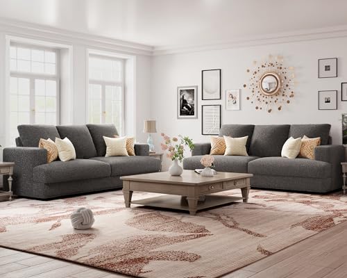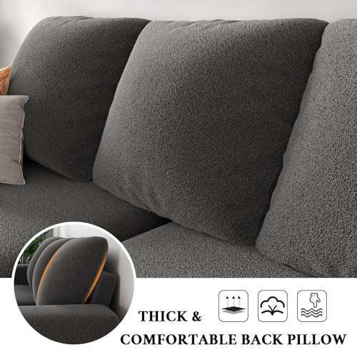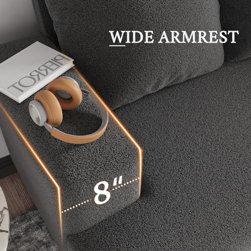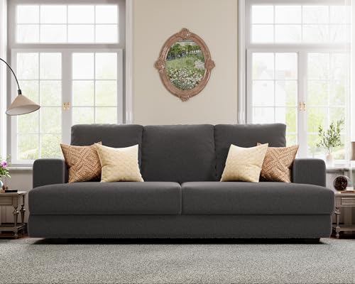 VanAcc Sofa, 3 Seater Comfy Couch Sofa- Extra Deep Seated Oversized Sofa, 97" Contemporary Couches for Living Room, Bedroom and Office (Grey,Bouclé)