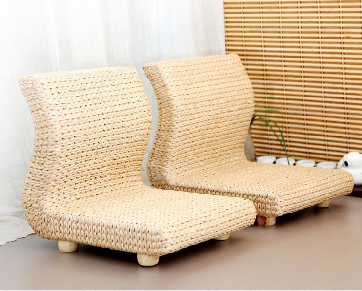 Handmade Rattan Floor Legless Zaisu Chair Straw Tatami Seats Backrest Chair for Balcony Bay Window Office Living Room Bedroom (Made from Banana Leaf), Natural, TA41B