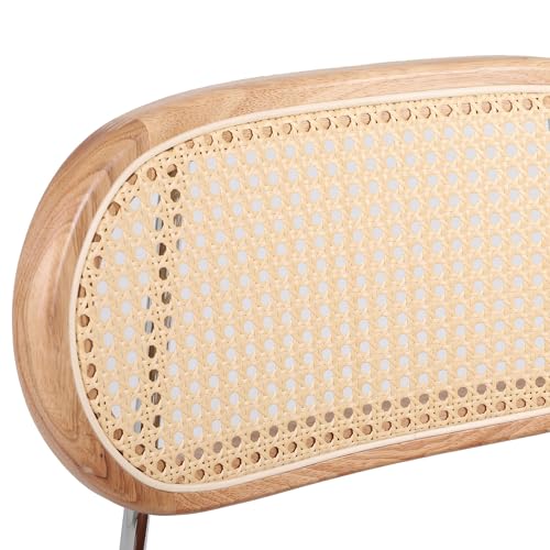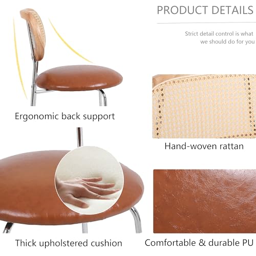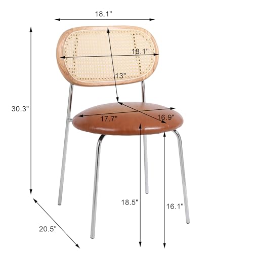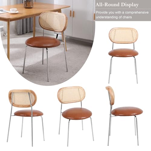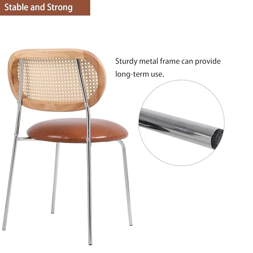 Danxee PU& Rattan Dining Chairs, Industrial Dining Chair with Silver Metal Legs, Leisure Upholstered Dining Chairs, Accent Desk Chair for Dining Room, Kitchen, Vanity, Living Room(Brown Set of 2)