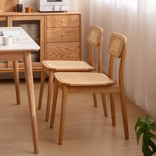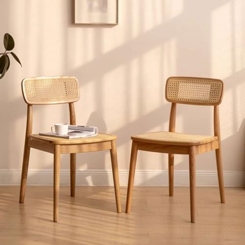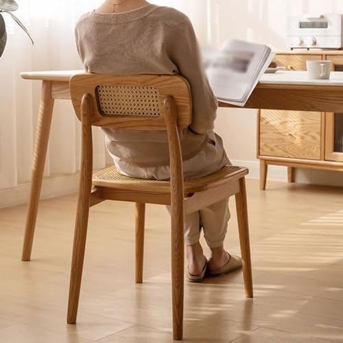 Office Chair Solid Wood Dining Chair, Rattan Chair with Backrest, Armless Dining Chair (Color: Solid Wood Color, Walnut Color) Office Computer Desk Chair(B)