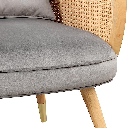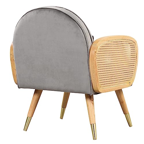 LUMISOL Mid Century Accent Chair, Upholstered Chair with Rattan Armrest and Metal Legs, Comfy Velvet Lounge Chair for Living Room, Bedroom, Office, Easy Assembly (Grey)