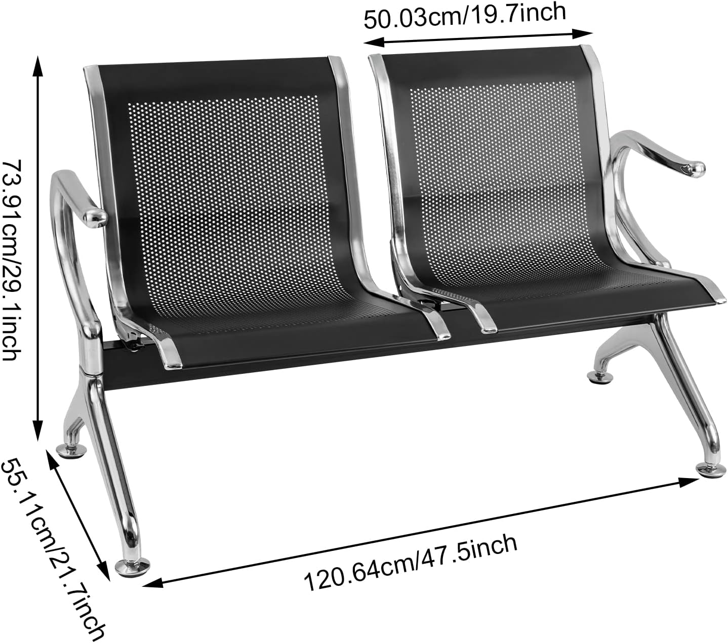 Waiting Room Chair 2-Seat Airport Reception Chairs,Guest Reception Lobby Benches with Arms for for Business Office,Bank,Hospital,School,Black