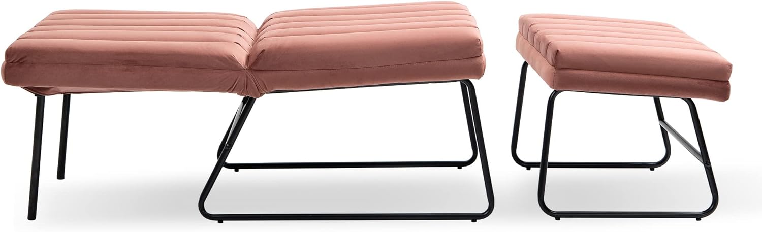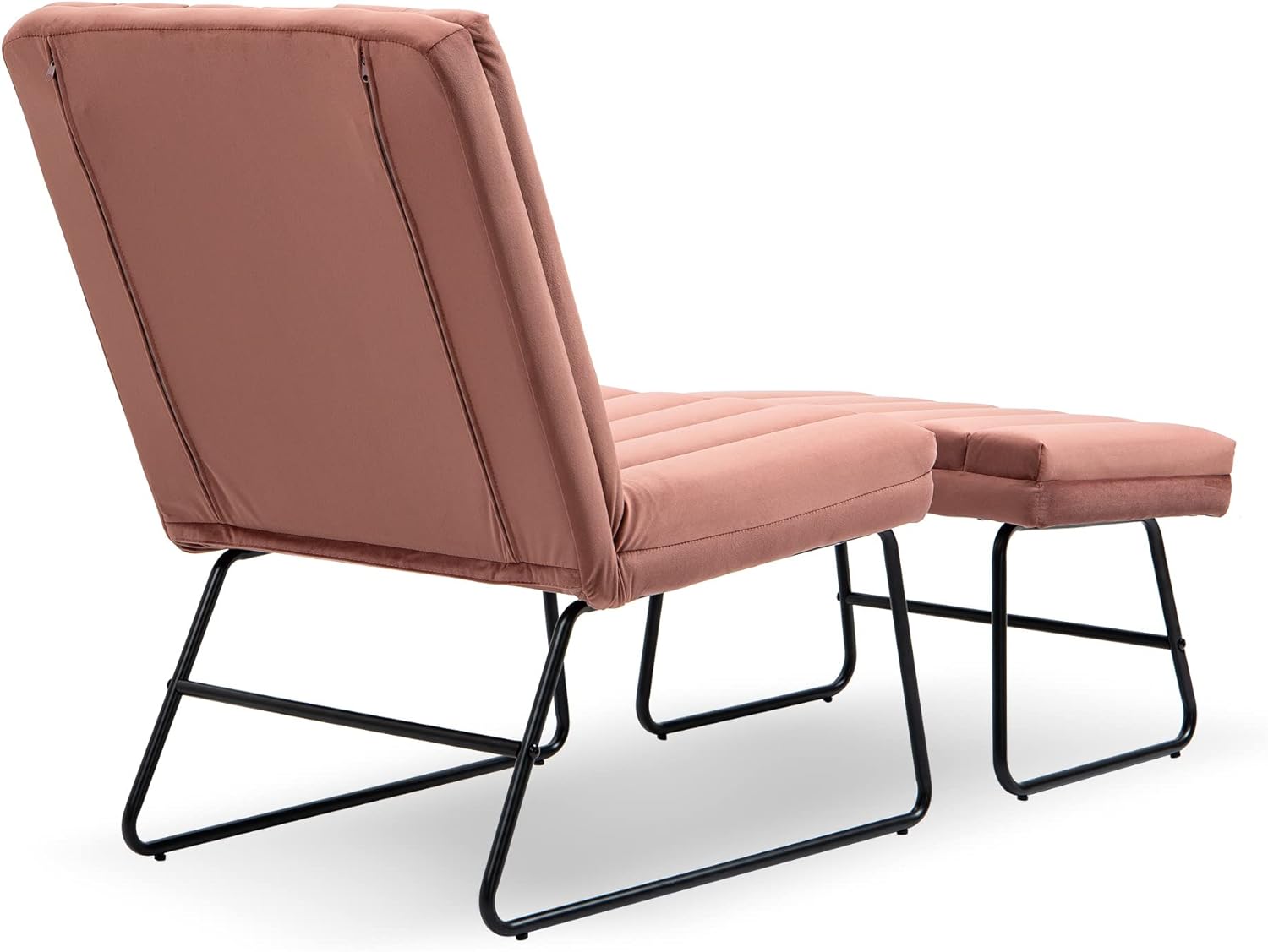 Convertible Chaise with Ottoman, Recliner 3 in 1 Modern Accent Comfy Sleeper ReadingChair with 2 Pillows for Living Room Home Office,Single Leisure Upholstered Sofa Set, Pink