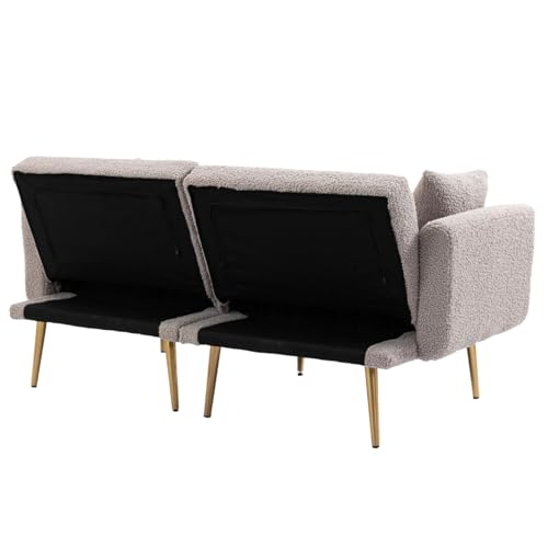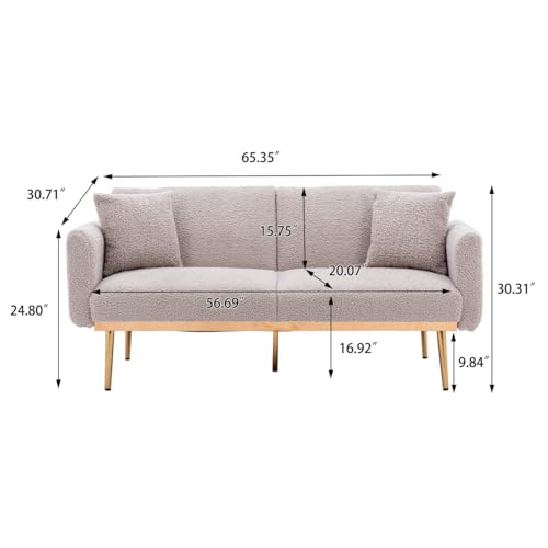 65.35" Split Back Futon Sofa Bed, Teddy Convertible Loveseat Sleeper Sofa with 5 Metal Legs, Button Tufted Loveseat Couches for Living Room, Bedroom, Brush Pink