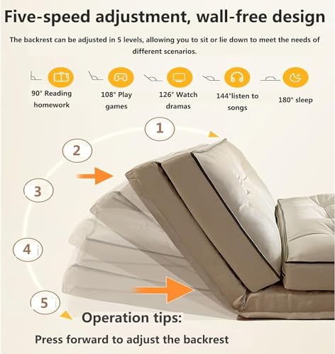 Multi-Functional 5-Position Foldable Lazy Sofa Sleeper Bed,Adjustable Floor Sofa Couch,No-wash Technical Cloth Floor Seating Sofa, for Reading Gaming Pink-110CM/43INCH