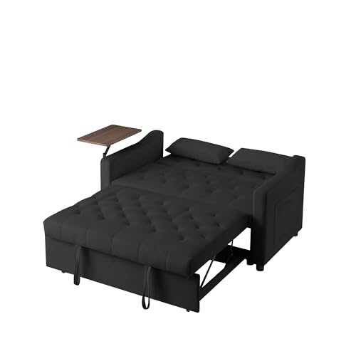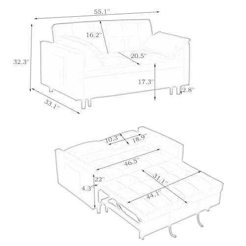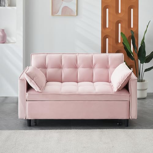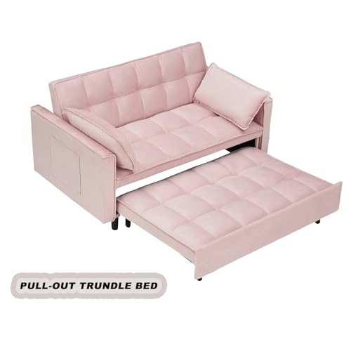 Sofa Bed with Pull-Out Bed Small Loveseat Casual Rollaway with Back Fabric Beds with Pillow and Pockets 3 in 1 Convertible Sleeper Couch for Living Room,W1658P166813-Pink