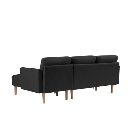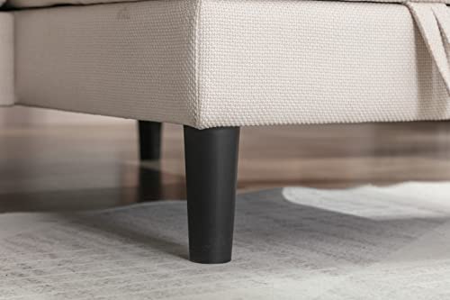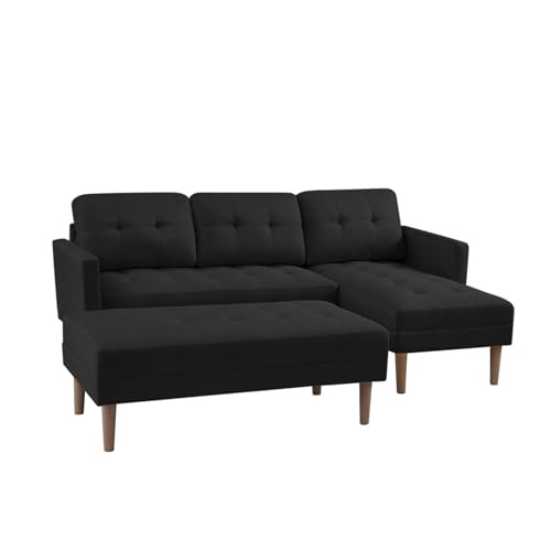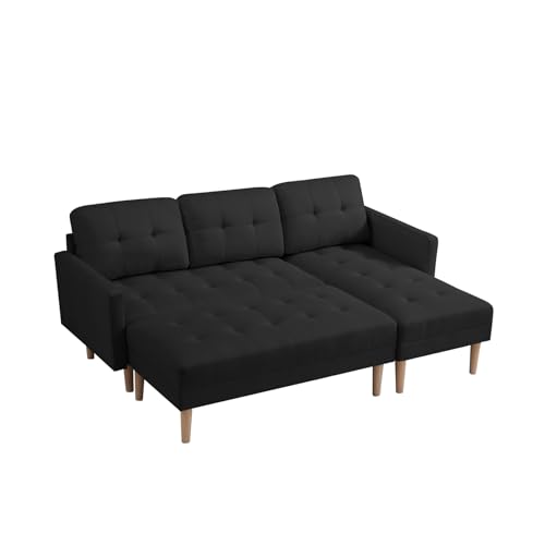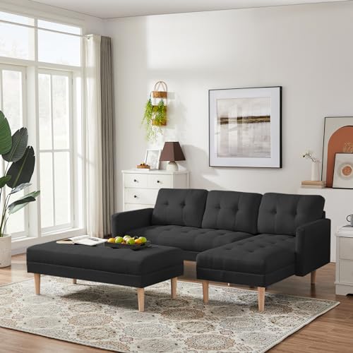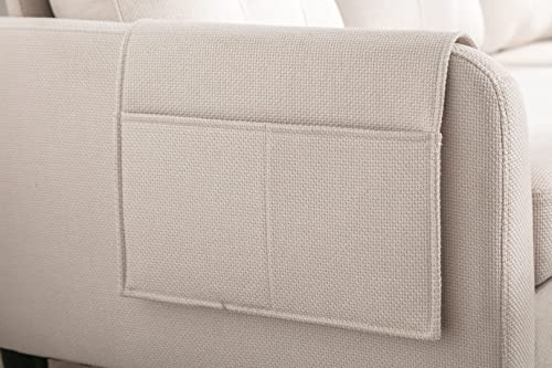 L-shaped Sectional Sofa Bed with Movable Ottoman and Chaise Lounge, Modern Linen Upholstered Sleeper Sofa Couch with Solid Wood Legs, 3-Seater Sofa for Living Room, Apartment, Office, Pink