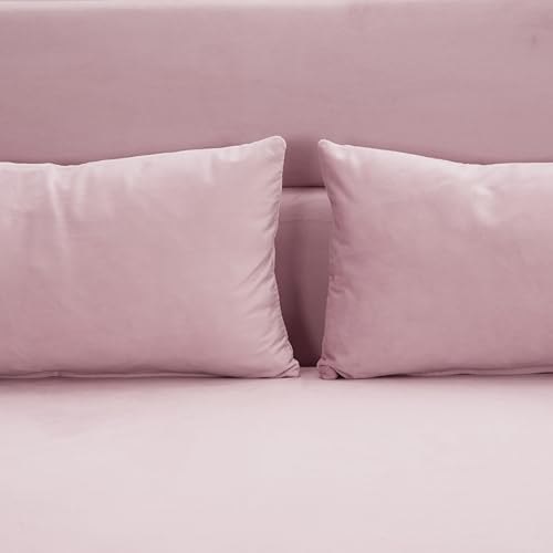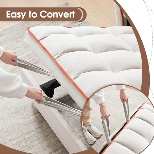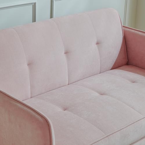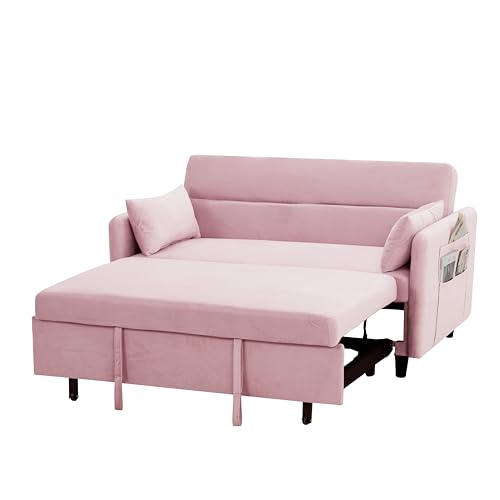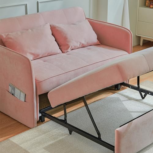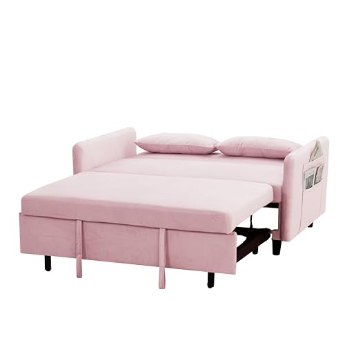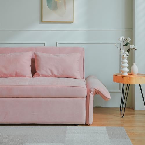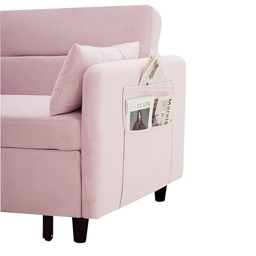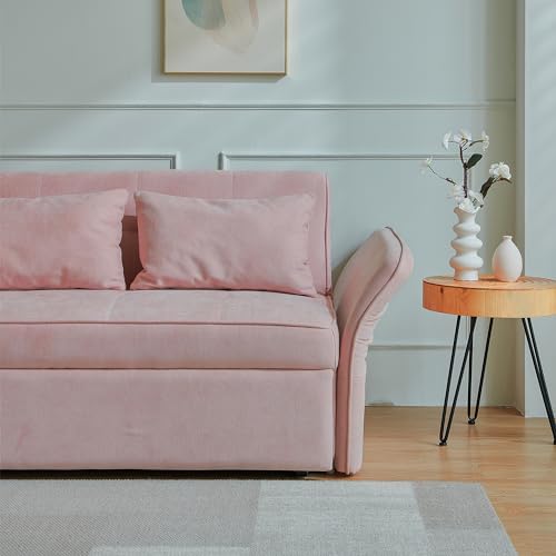 Sleeper Sofa Couch Bed 3-in-1 with Two Pillows-Soft Velvet Surface and Handy Pull-Out Bed Strap - Ideal for Guest Rooms, Pink