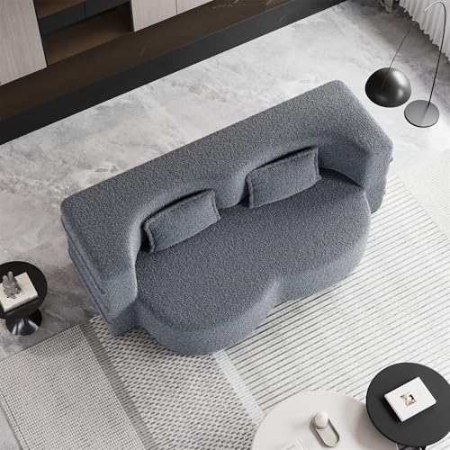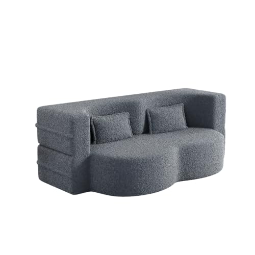 Henf Pink Futon Sofa Bed,Modern Floor Sofa Fold Out Couch Bed with 2 Pillows,Convertible Teddy Foam-Filled Sleeper Sofa Bed,15" Full Size Folding Mattress for Living Room,Playroom,No Need Assembly