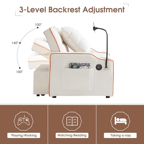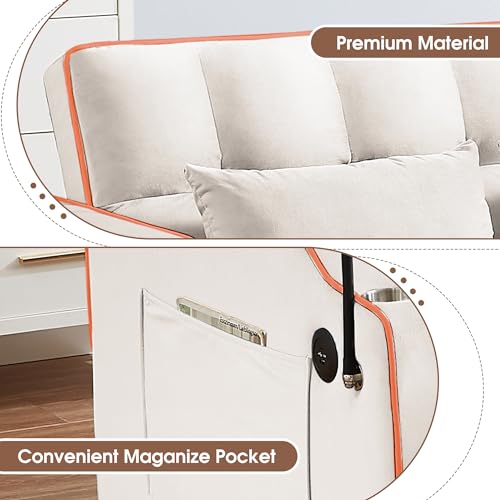 Convertible Pull-Out Sofa Bed,Comfy 2 Seater Loveseat Velvet Sleeper Sofa Couch with USB,3-in-1 Multi Functional Twin Sleeper Sofa with Phone stand, Cup Holder for Living Room Bedroom(Pink)