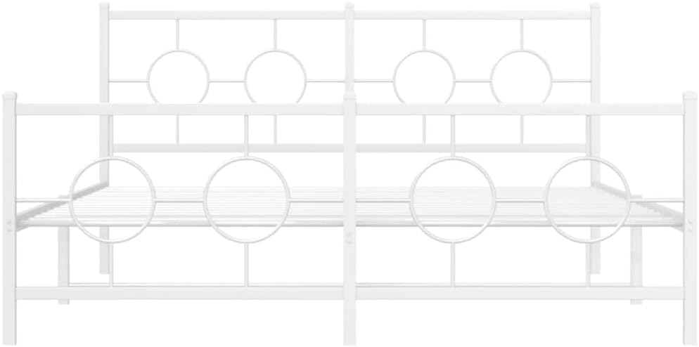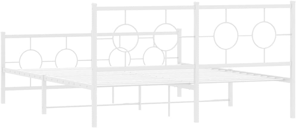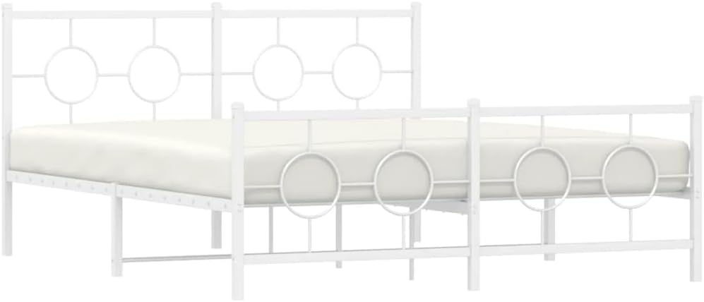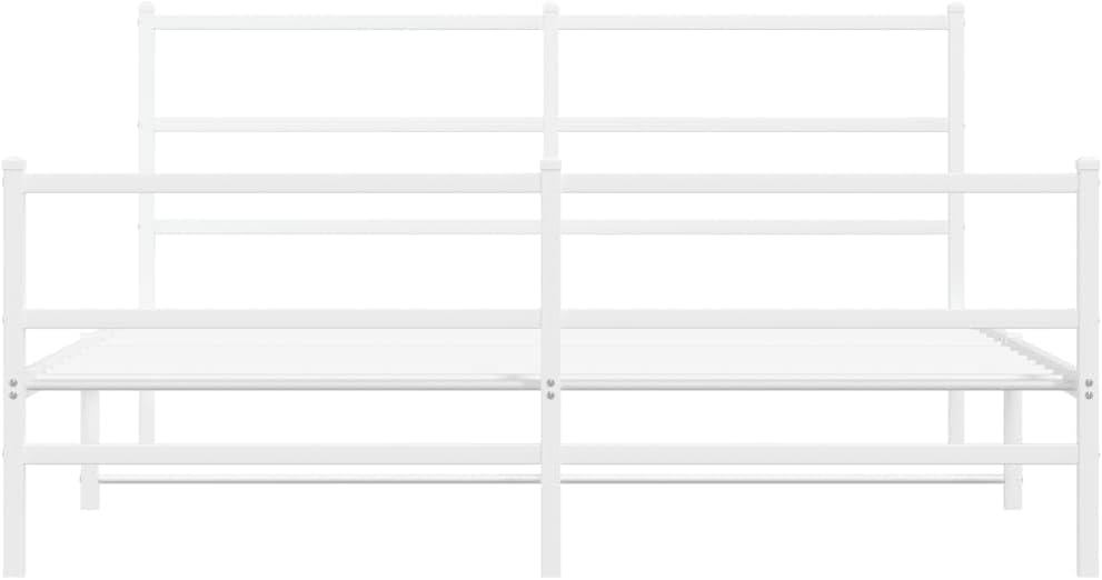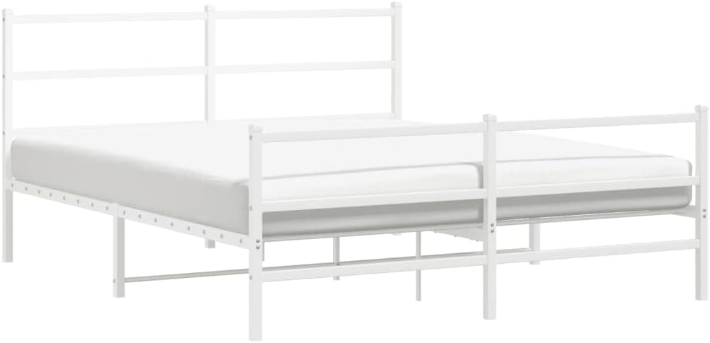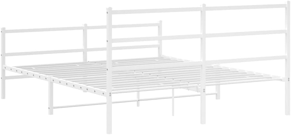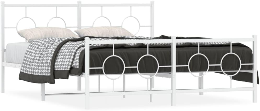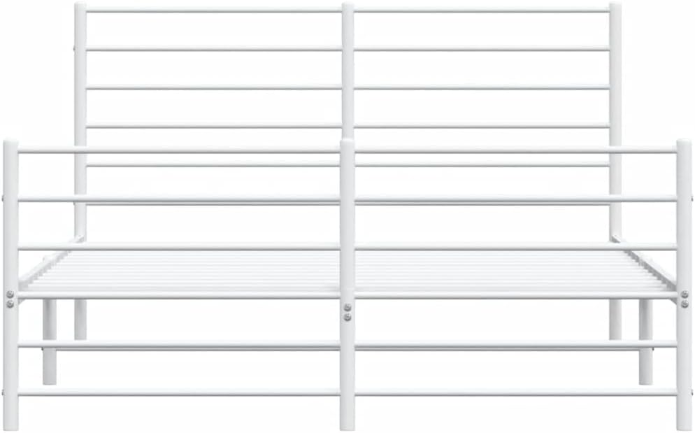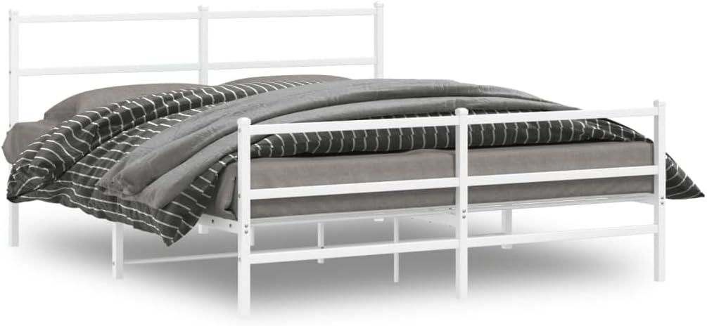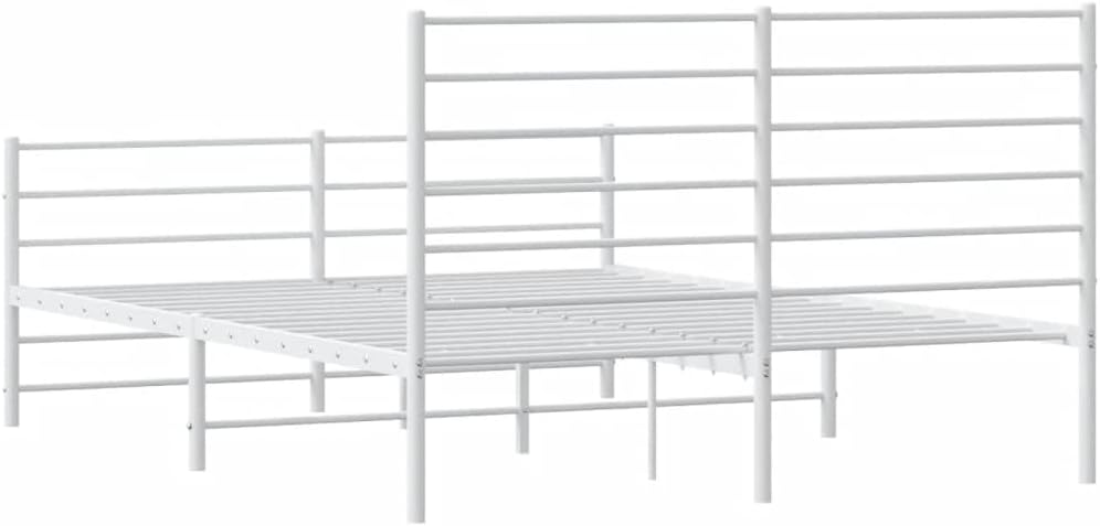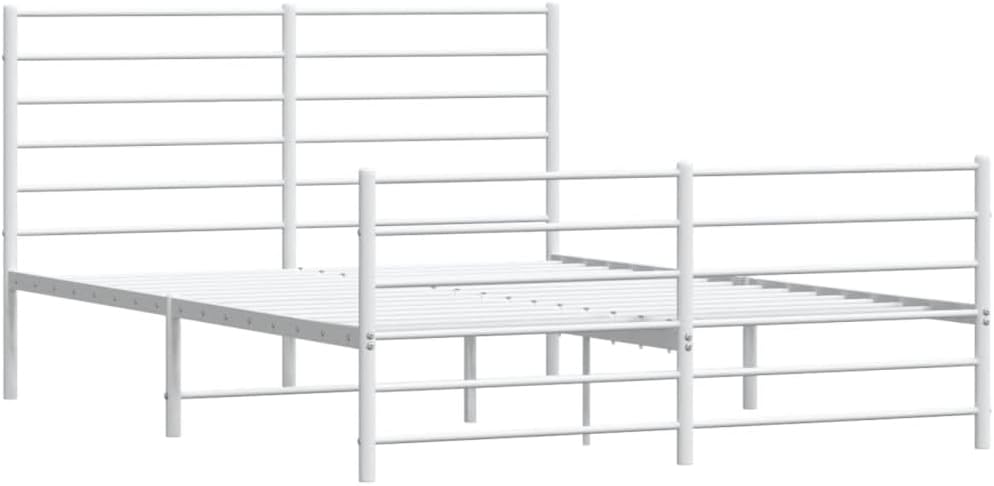 vidaXL White Metal Bed Frame with Headboard/Footboard - Steel Double Bed for Bedroom/Guest Room, 59.1"x78.7" Mattress Size