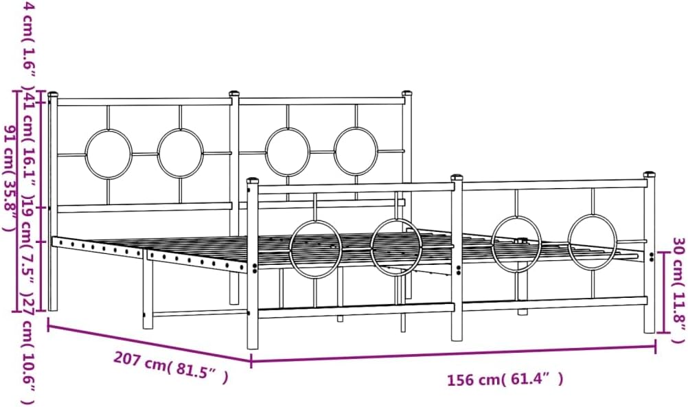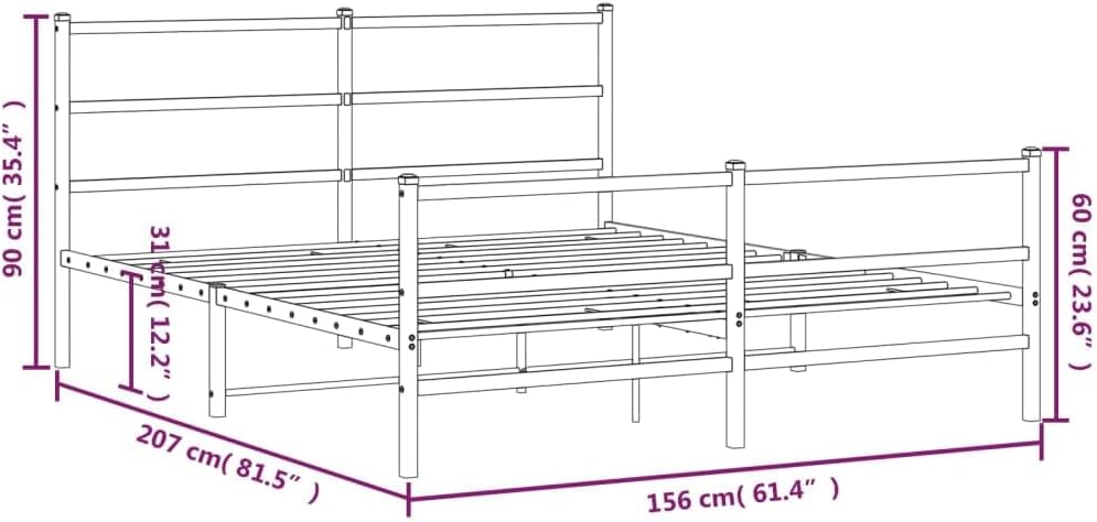 vidaXL White Metal Bed Frame-Industrial Double Bed with Headboard/Footboard, Bedroom Furniture, 81.5"x61.4", Mattress Support