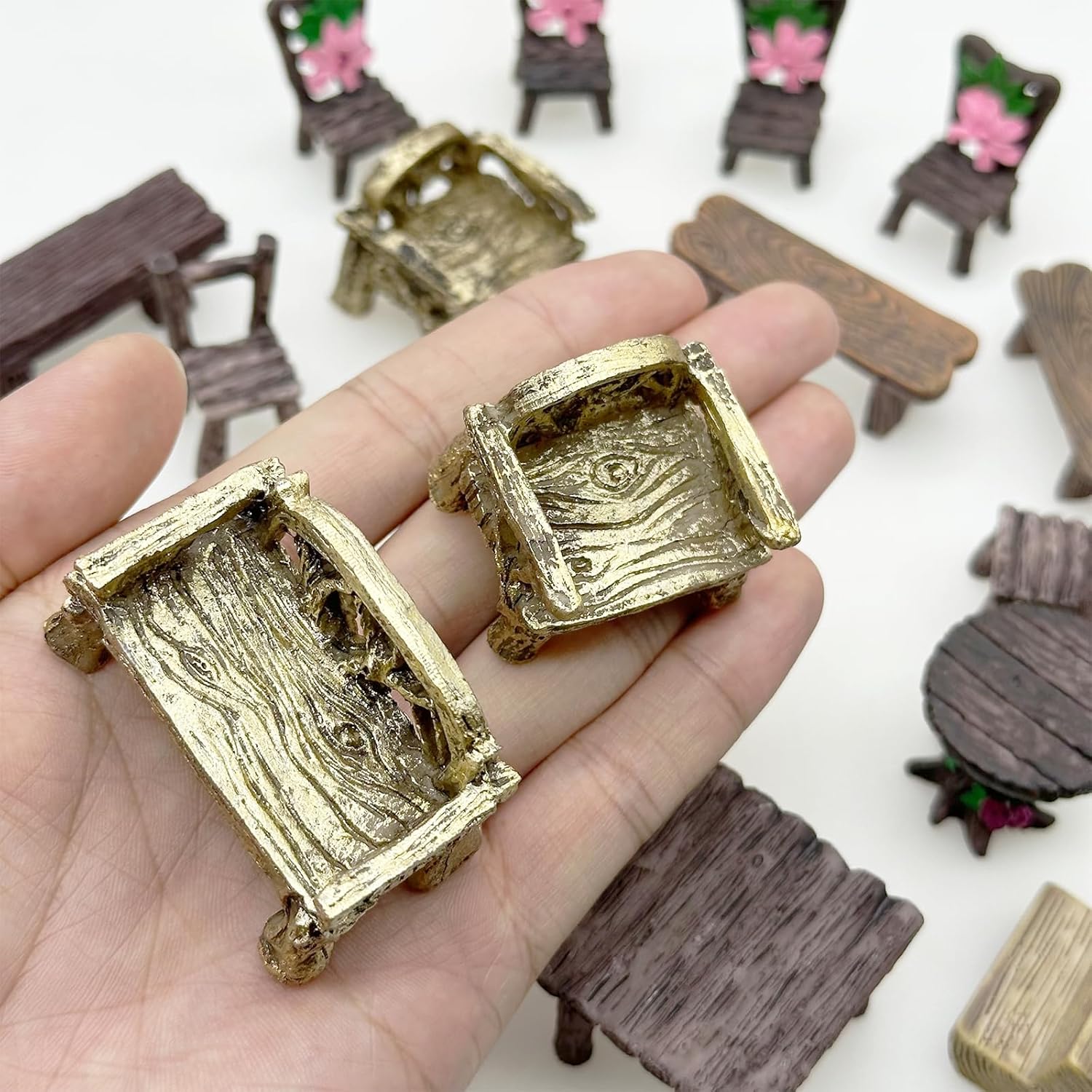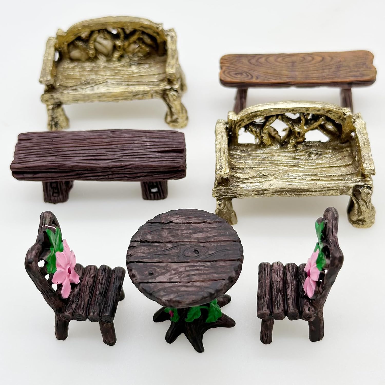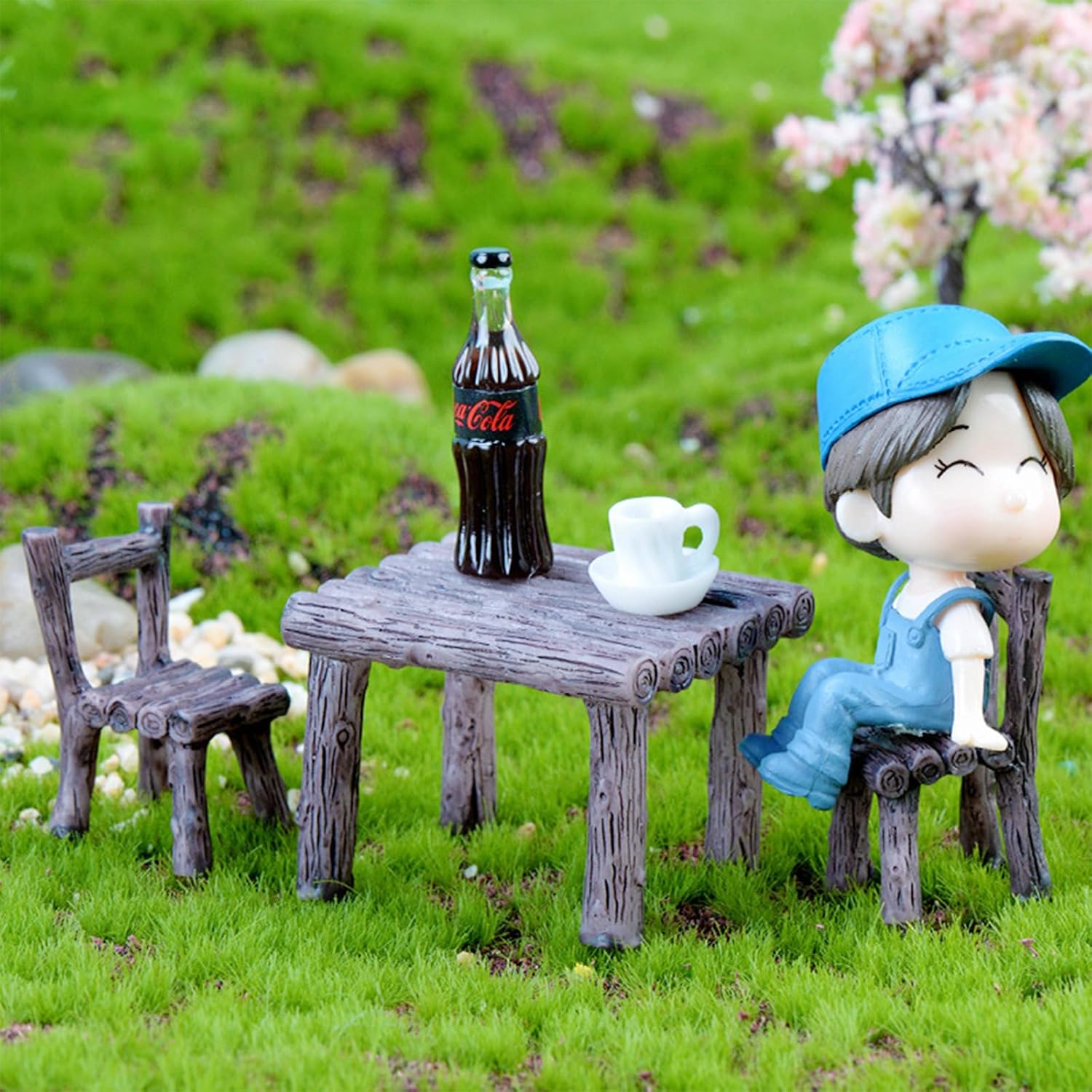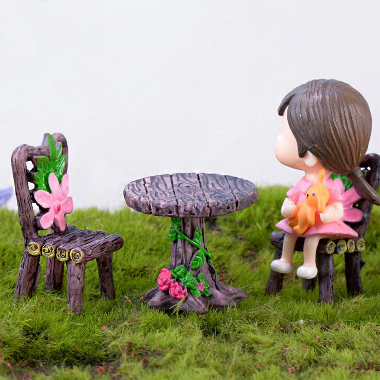 Cayway 17 PCS Miniature Garden Ornaments, Miniature Garden Table and Chairs Set, Fairy Garden Ornaments for Garden Home Micro Landscape Decoration