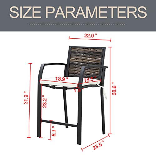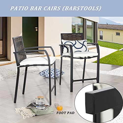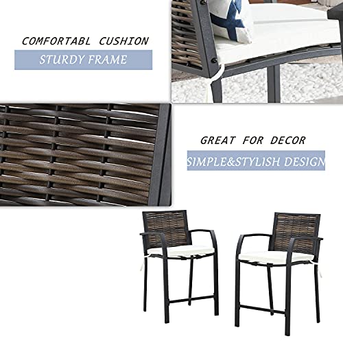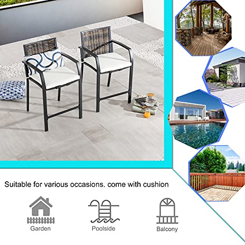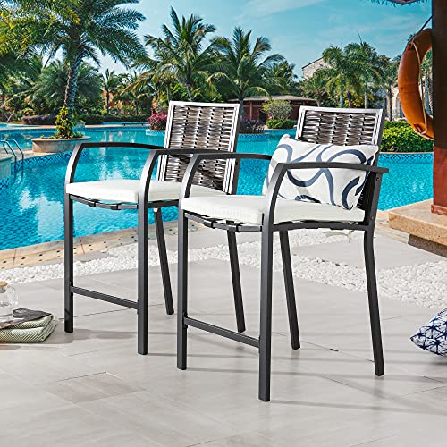 LOKATSE HOME 2 Piece Bar Stools Counter Height Chair Patio Furniture with Armrest for Garden Pool Lawn Backyard, Beige