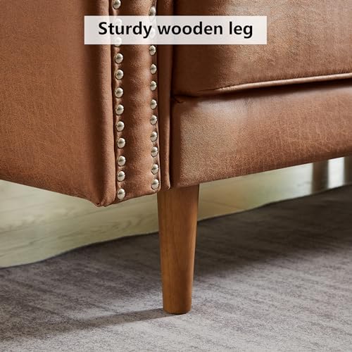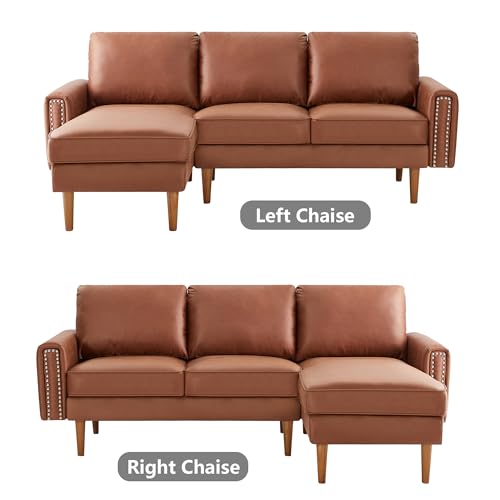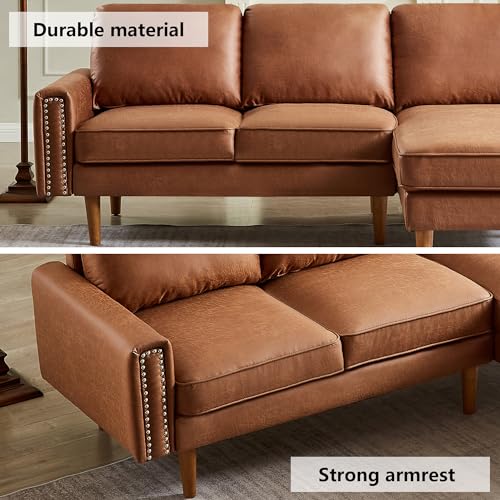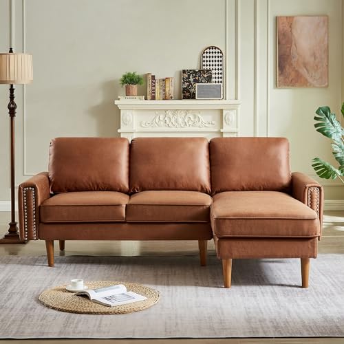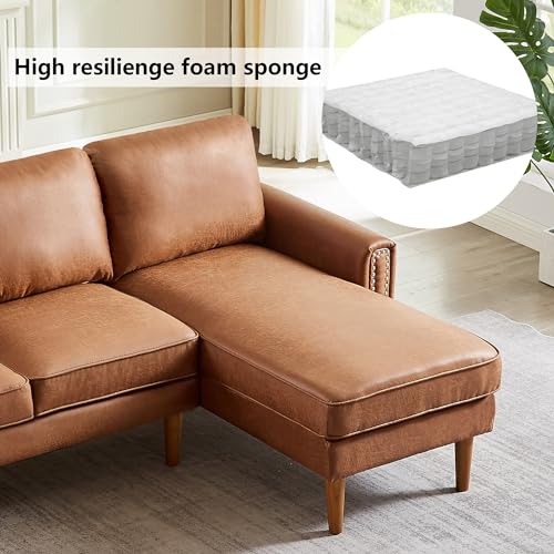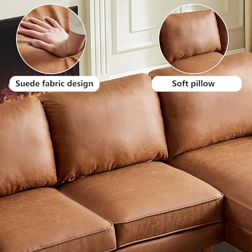 Setawix Convertible Sectional Sofa with Reversible Chaise L-Shaped Couch 3 Seat Suede Fabric Sofa with Recliner Modular Sofa Bed with Strong Wooden Leg for Living Room,Apartment,Small Spaces (Brown)