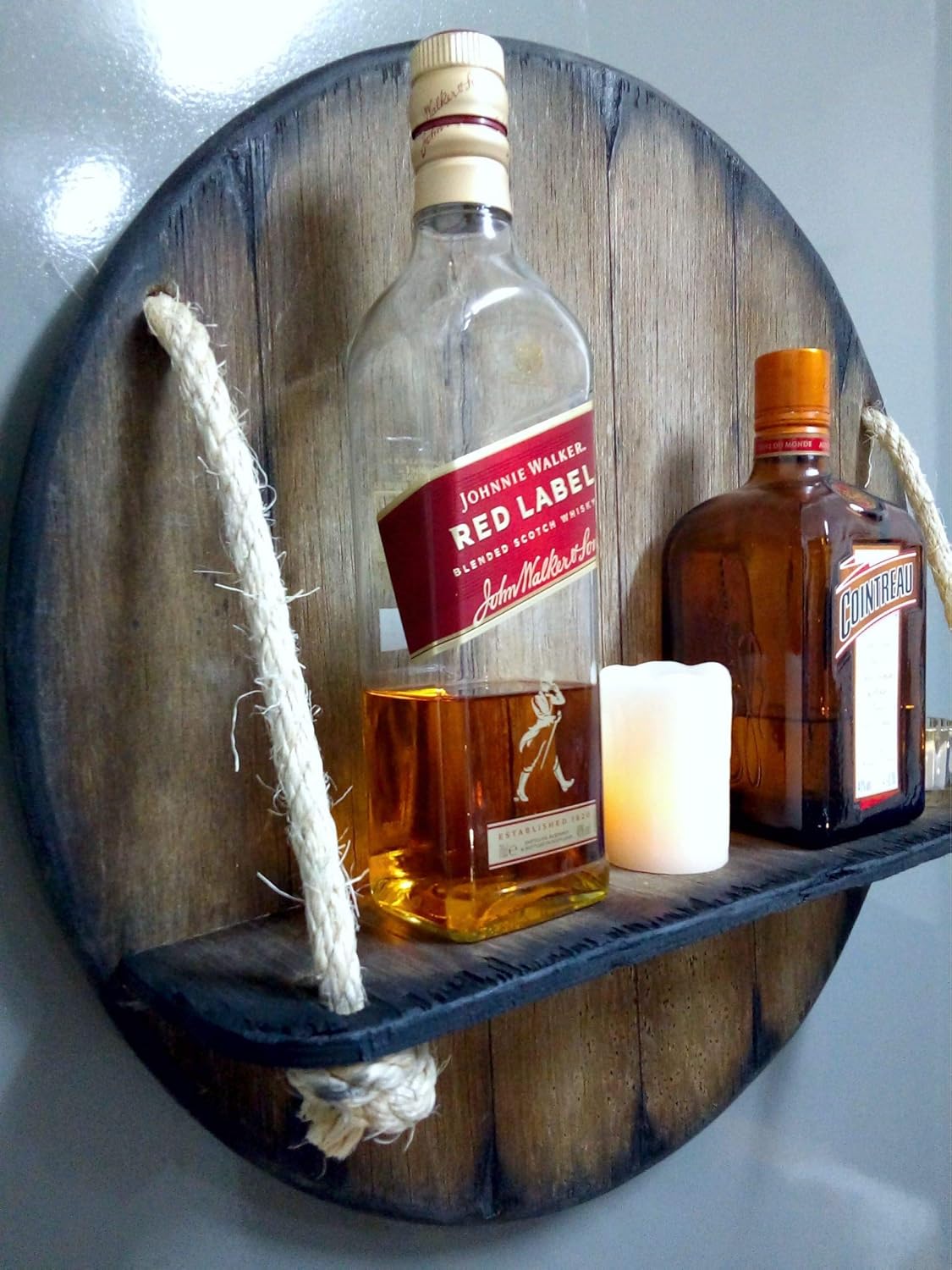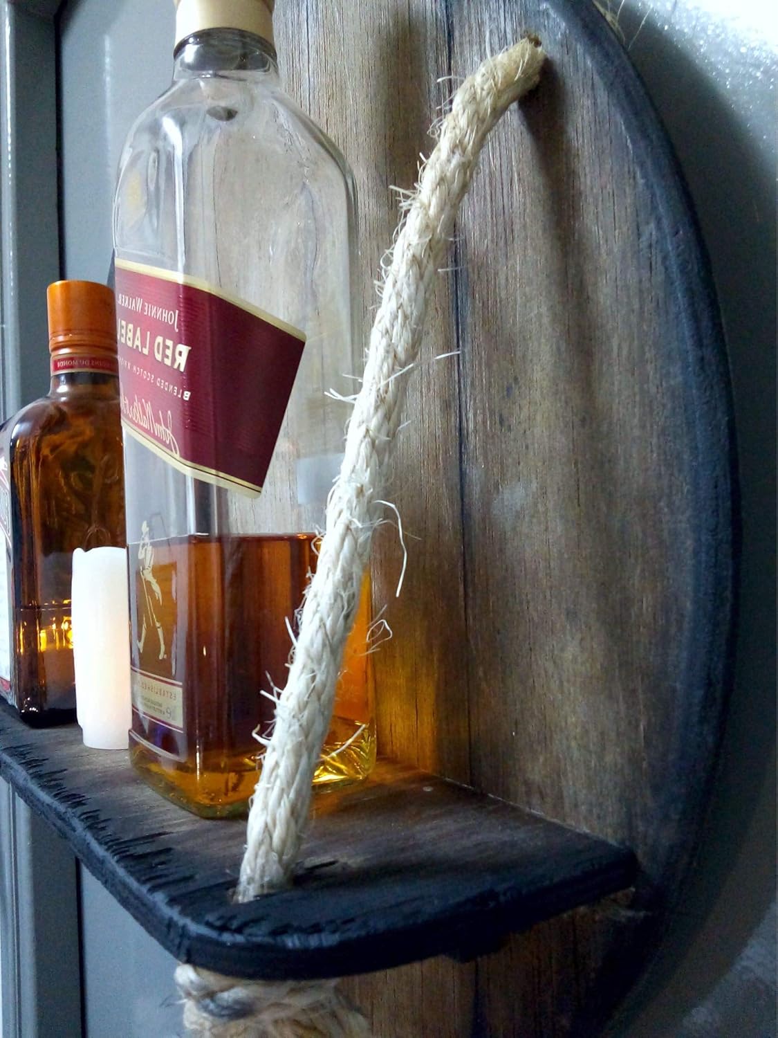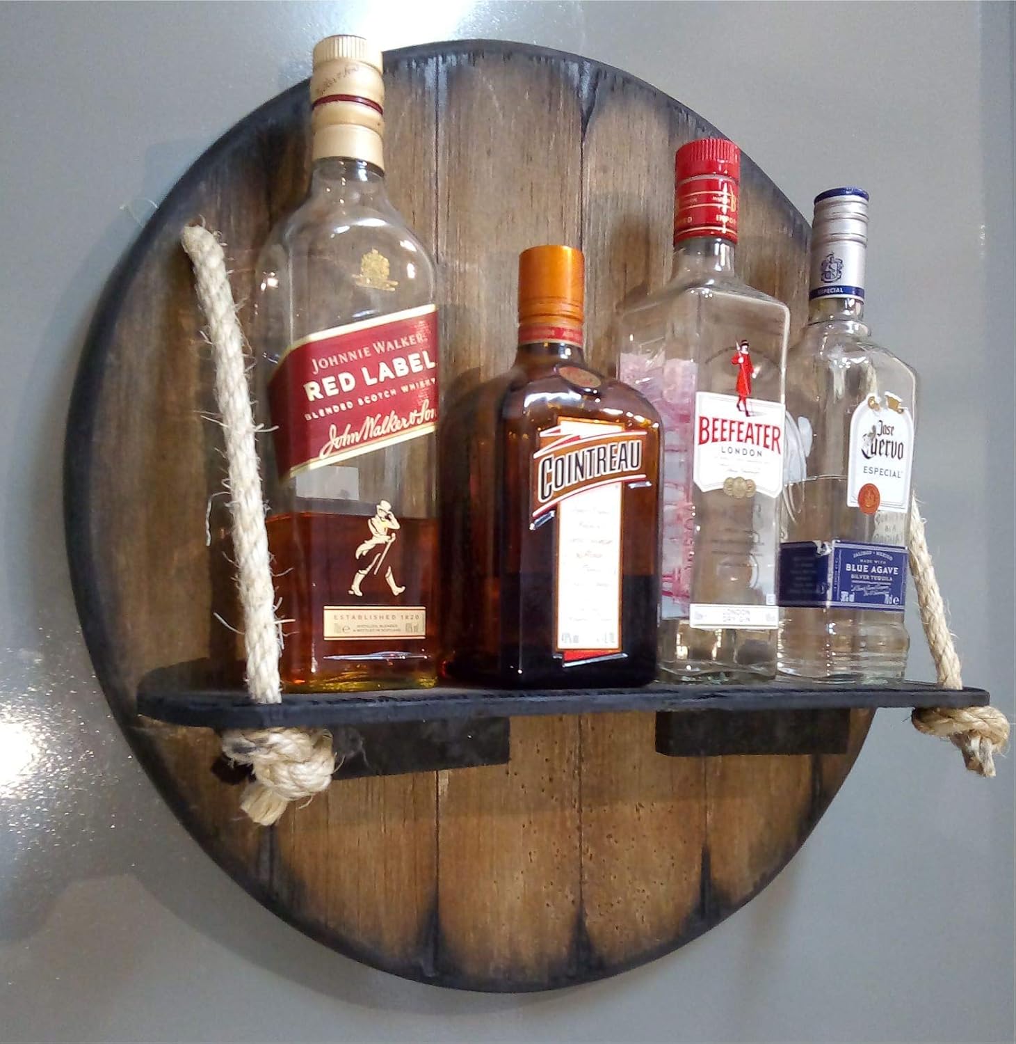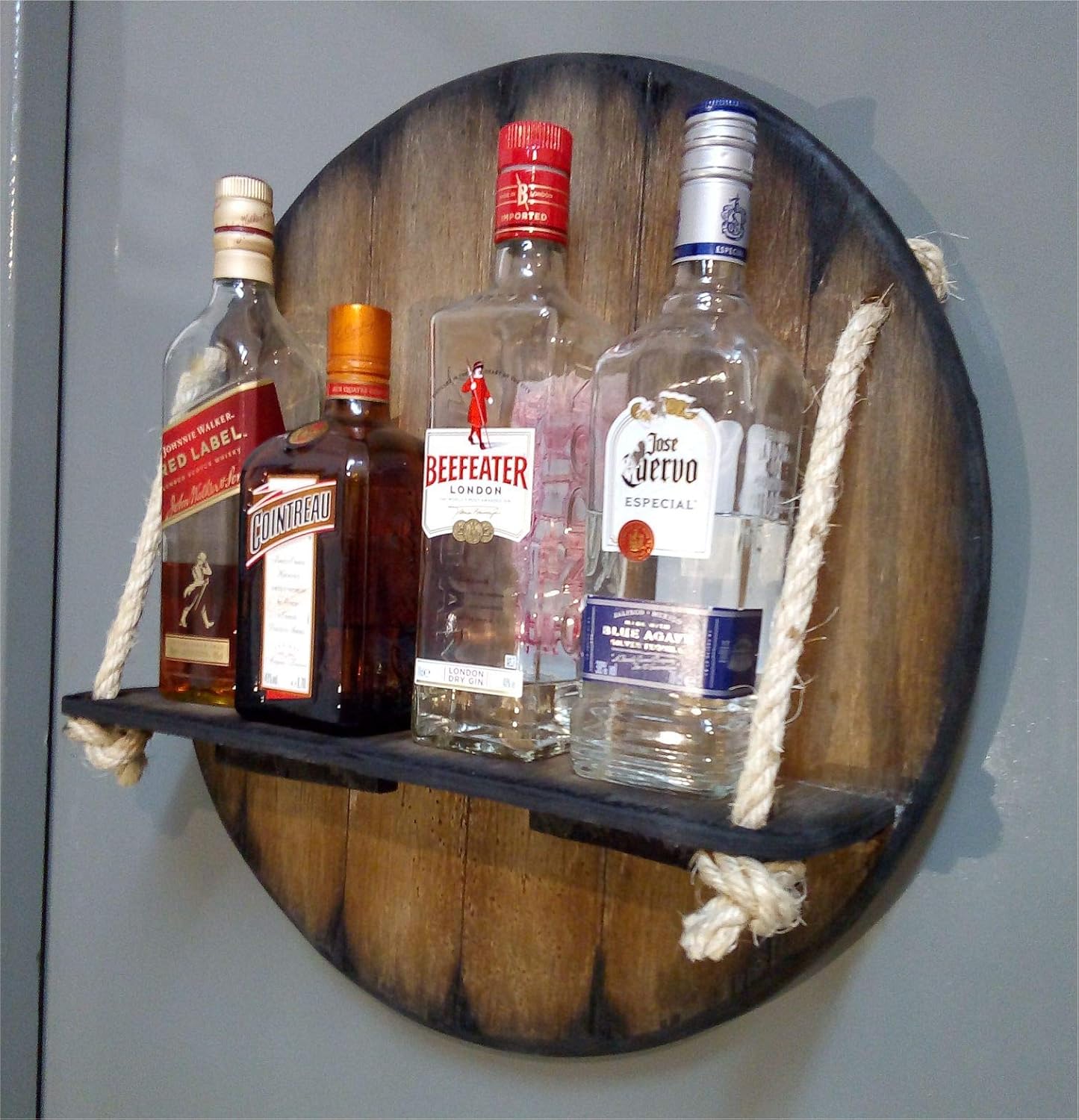 Personalized Wall Mounted Wood Wine Rack or Liquor Bottle Storage Holder Inspired by Old Whiskey & Wine Barrels, Rustic Wood Storage for Kitchen, Dining Room, Bar, Wine Cellar, Custom Gifts