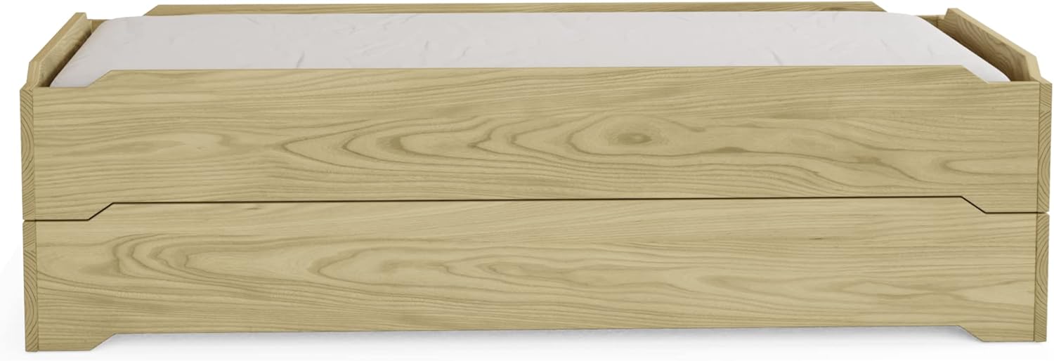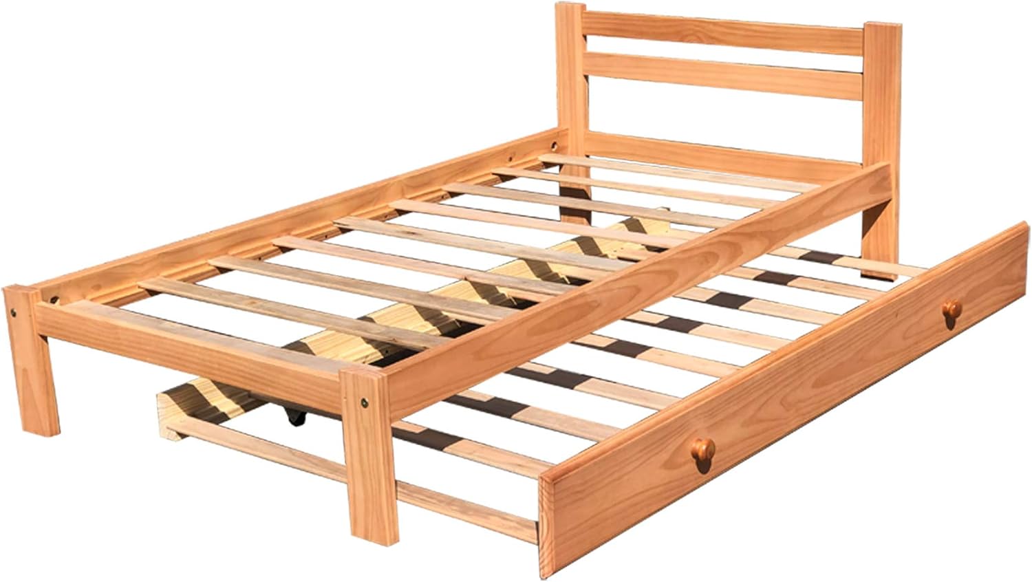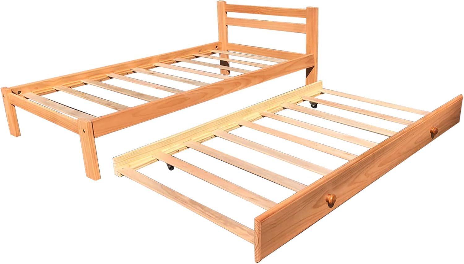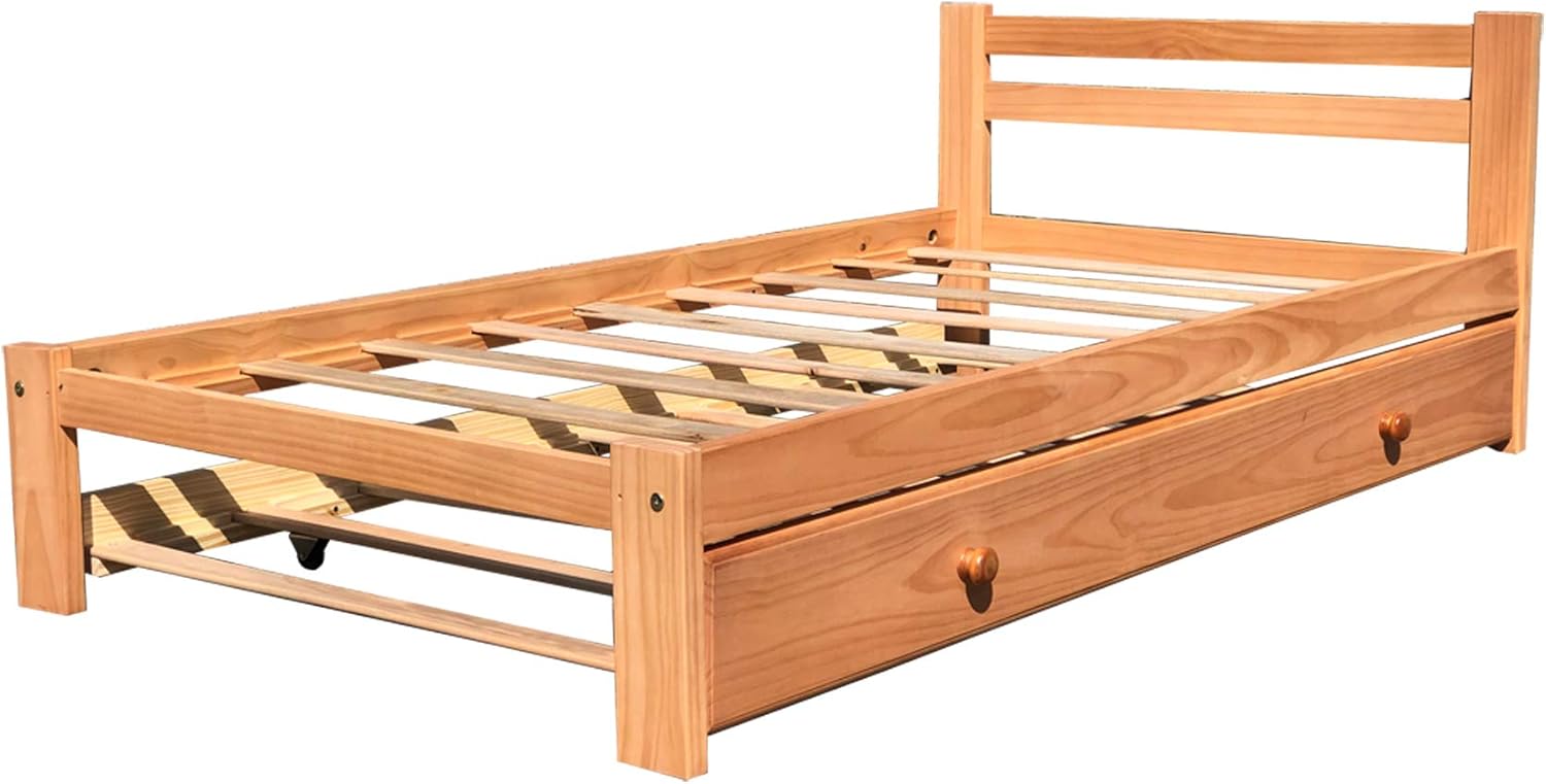 Amazonas Honey Pine Finish Twin Bed & Trundle Solid Pine Wooden Trundle Bed Hardwood Slats Support Suitable for Boys Girls Kids Bedroom Wooden Bed Frame