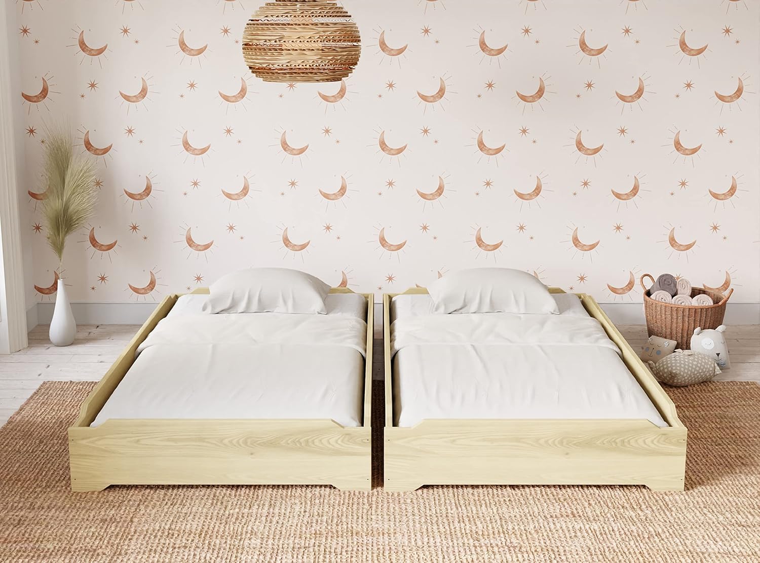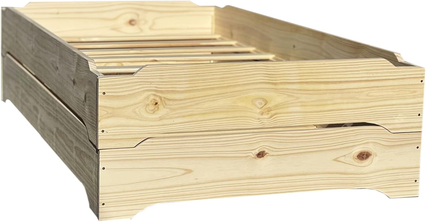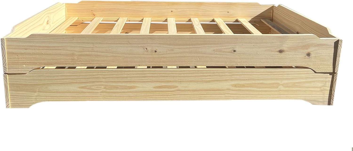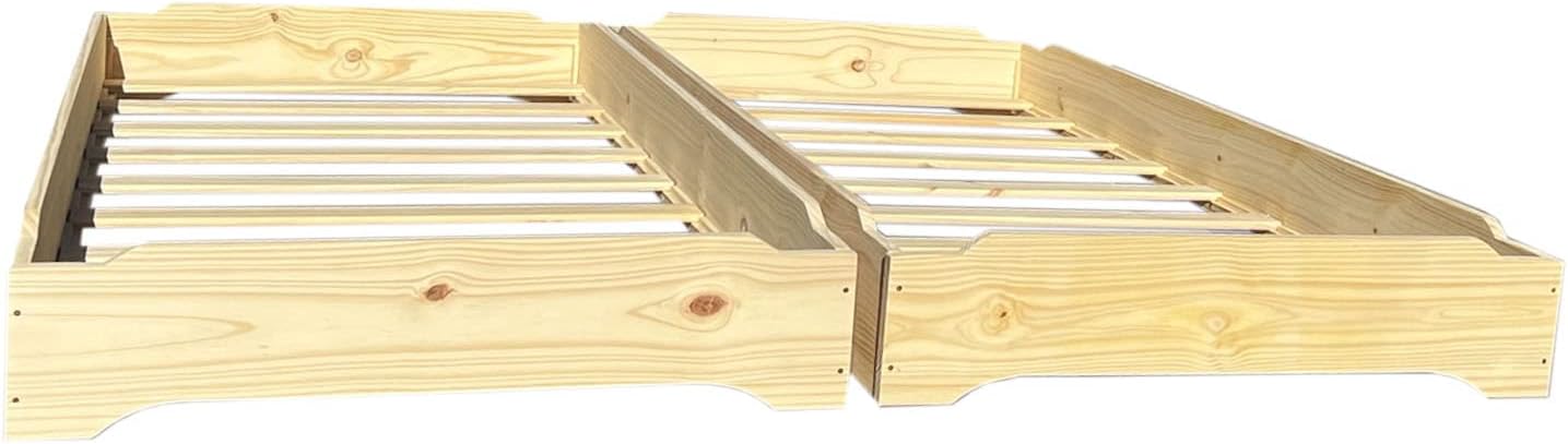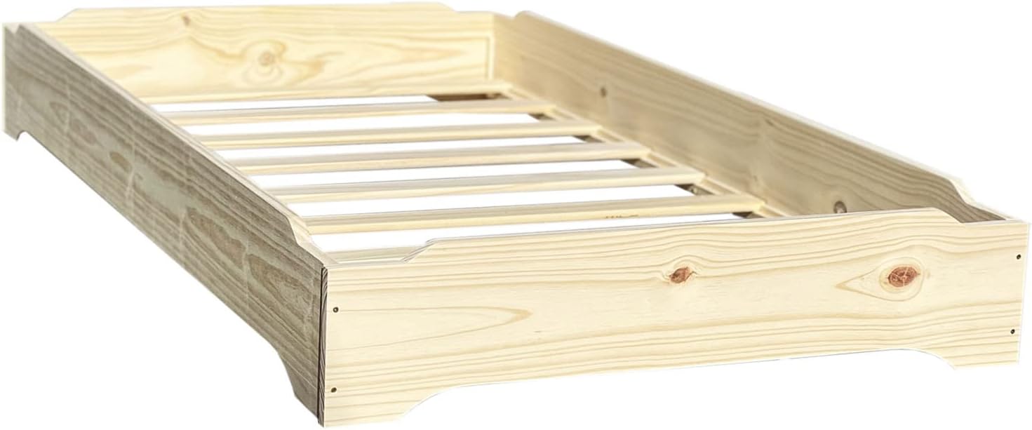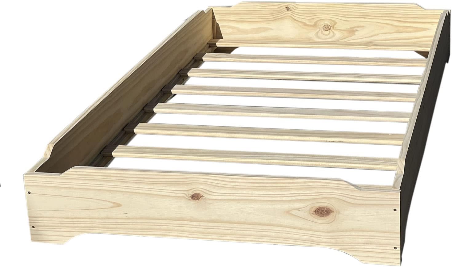 Stackable Beds - Set of Two - Twin over Twin Wooden Bed Floorbed Frame Unfinished -Easy to Assemble Solid Pine Wooden Bed Frame