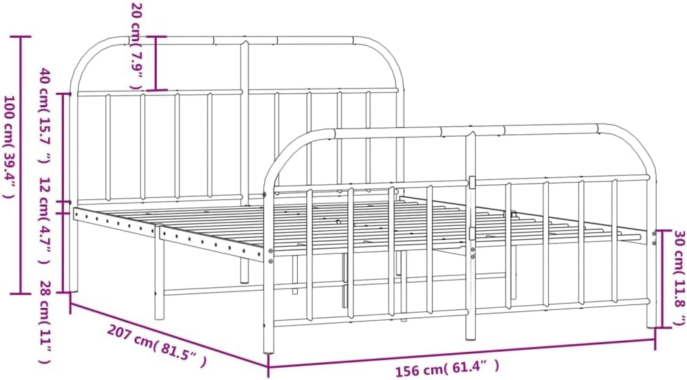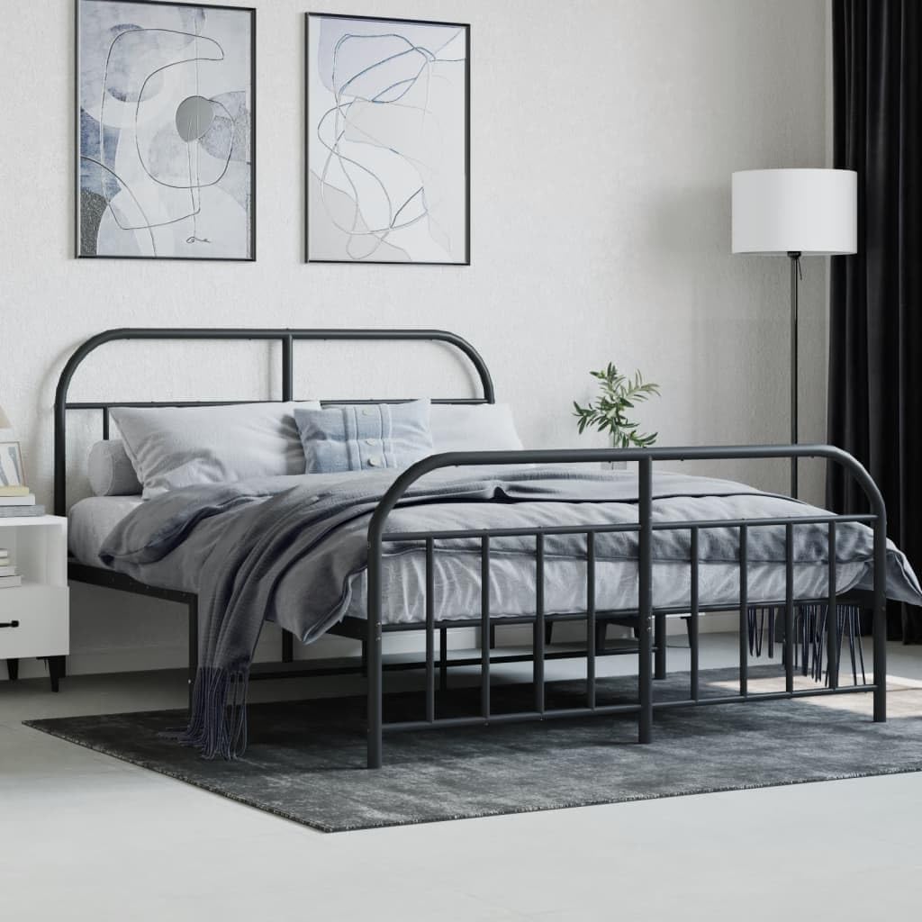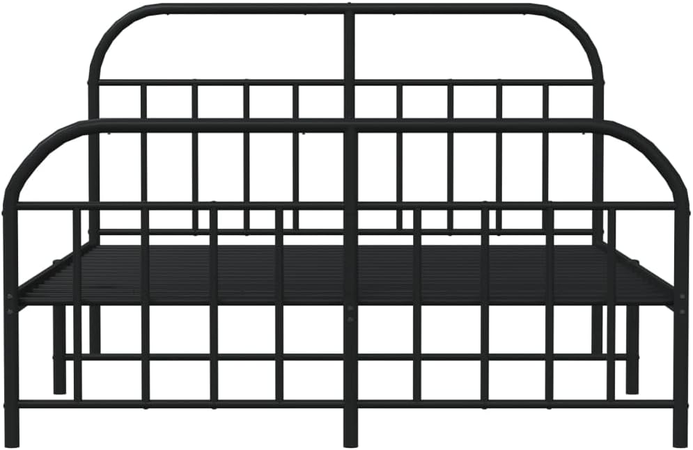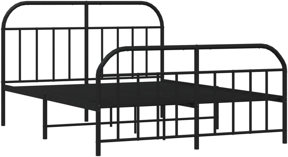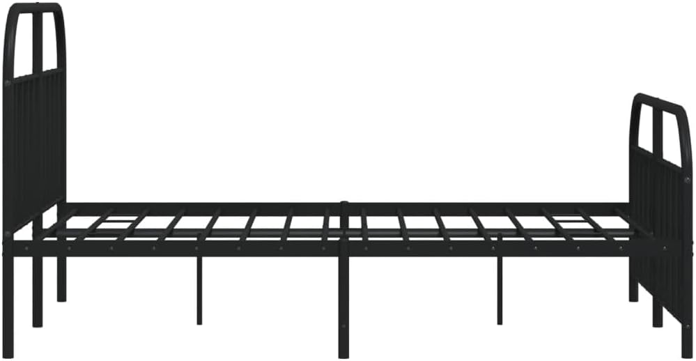 vidaXL Double Bed Frame with Headboard and Footboard in Black | Sturdy Powder-Coated Steel Construction | Complete with Metal Slats and Center Legs | Extra Under-Bed Storage Space