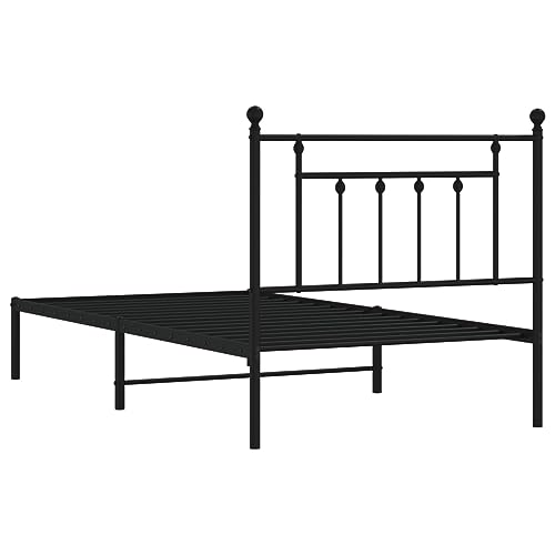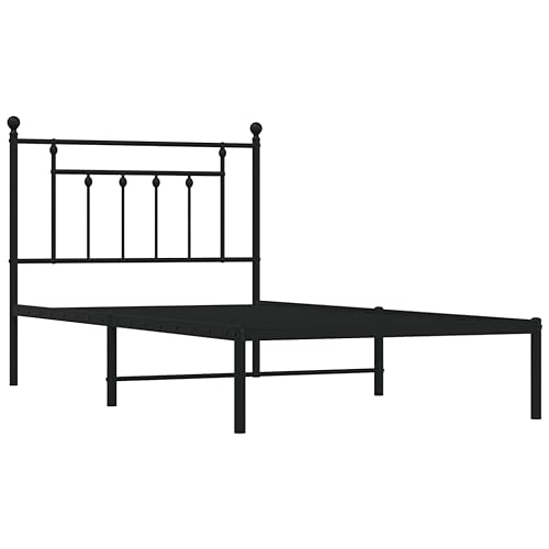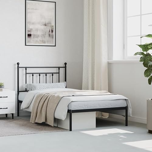 vidaXL Black Metal Bed Frame, Headboard Included, Durable Steel Construction, Storage Space, Industrial Design