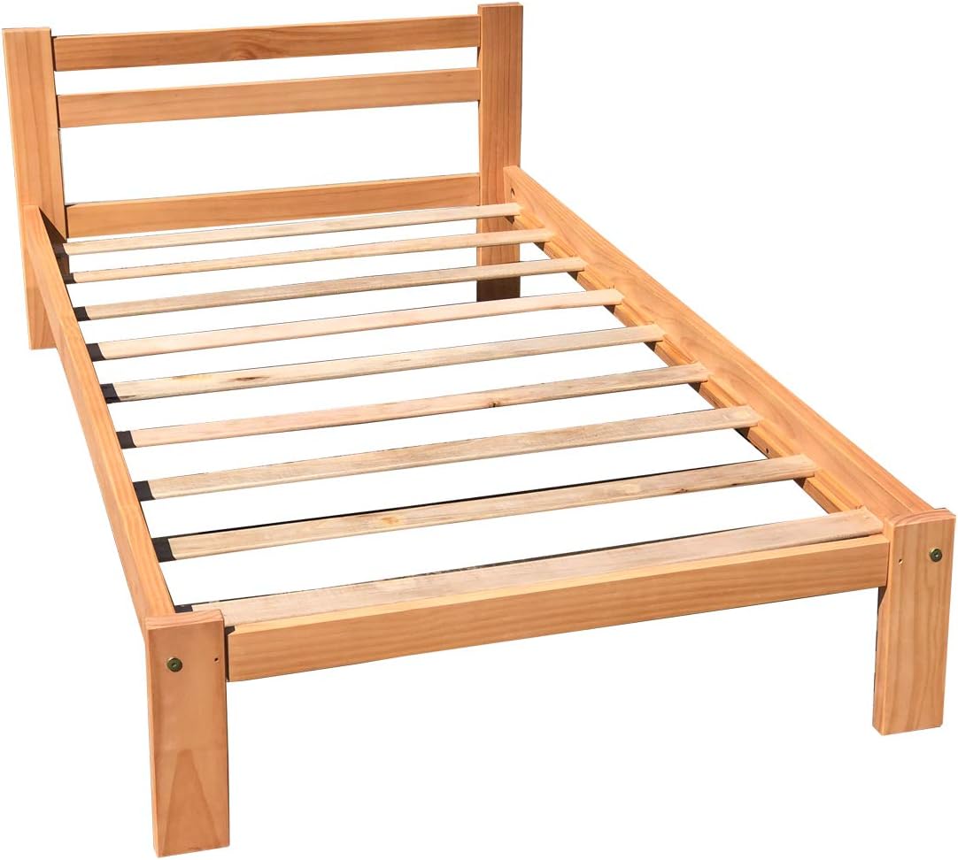 Amazonas Twin Size Bed Frame Solid Pine Wood Honey Pine with Hardwod Slats Support Finish Wooden Kids Bed Single Suitable for Boys Girls Bedroom Wooden Bed Frame