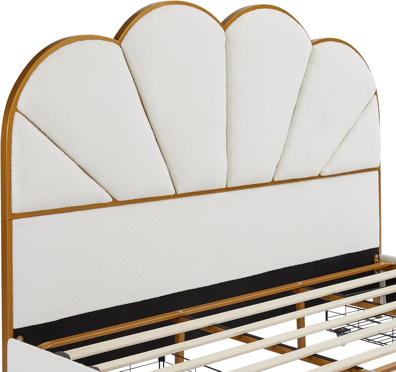 King Size Platform Bed Frame with 4 Drawers Upholstered Strong Wood Slats Support White Custom
