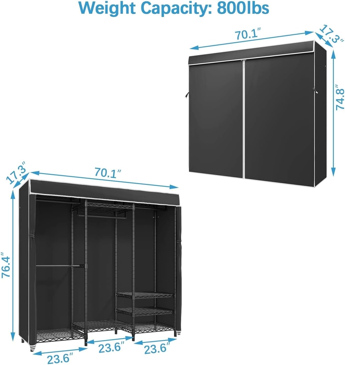 Heavy Duty Covered Clothes Rack Portable Bedroom Metal Clothing with Cover Adjustable Custom Freestanding Wardrobe Black Modern Contemporary Wood Oak Finish